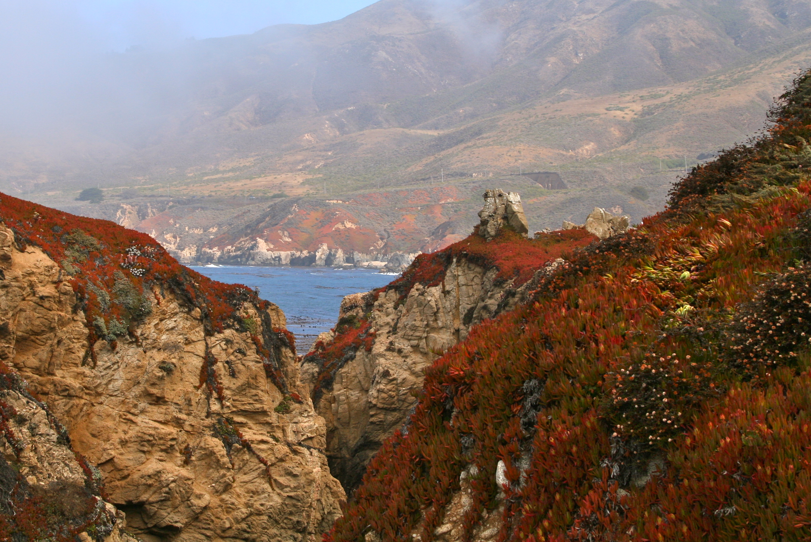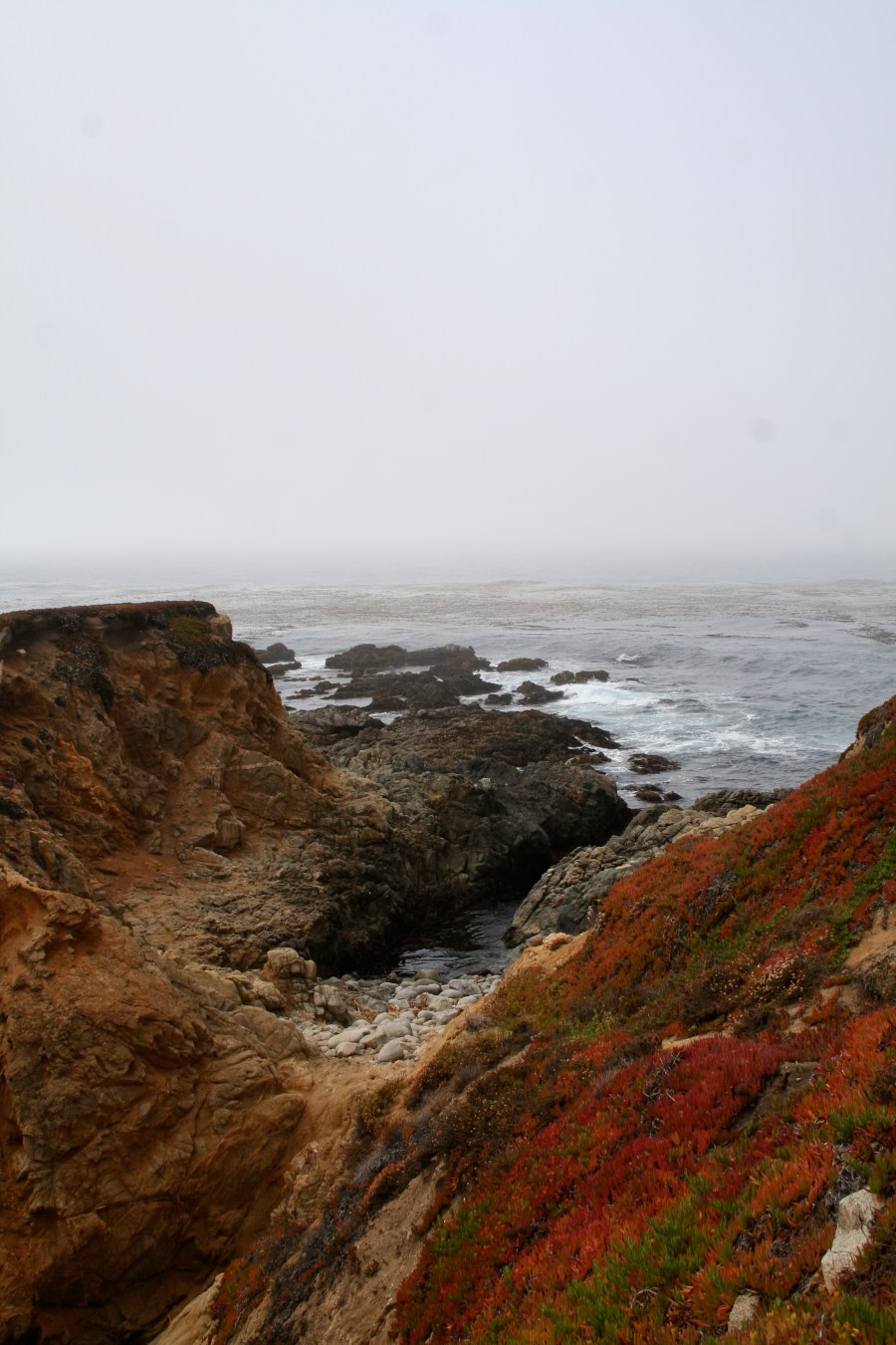 Sea lions, harbor seals and sea otters frequent the coastal waters and California gray whales pass close by during their yearly migration. But this day it was vegetation and wonderful rock formations that caught my eye. To make things even better, the fog started rolling it.