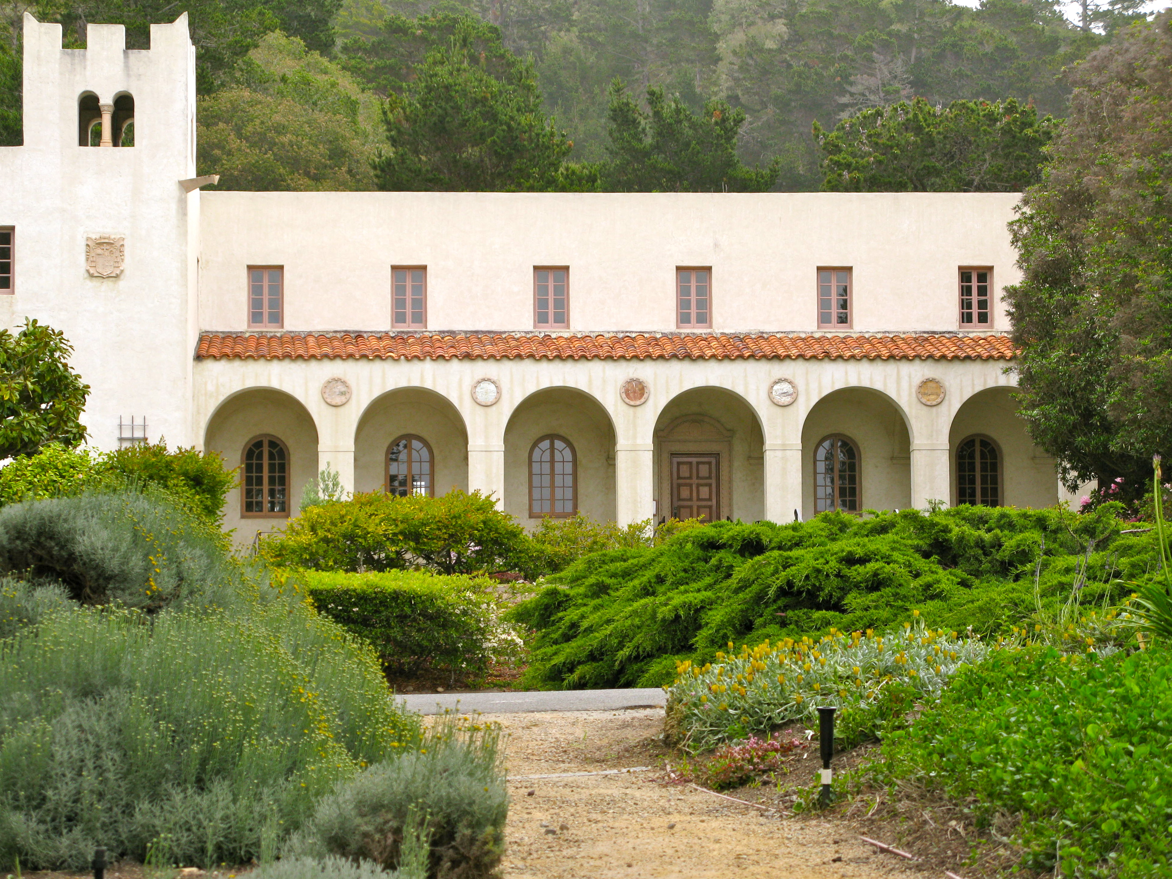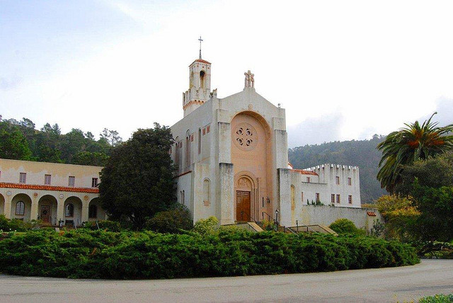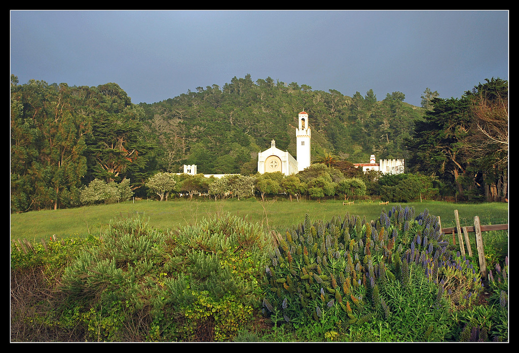 As I drive up and down Highway One to Point Lobos or Big Sur, I notice a beautiful church high on a hill overlooking the road. It sits above Monastery Beach.