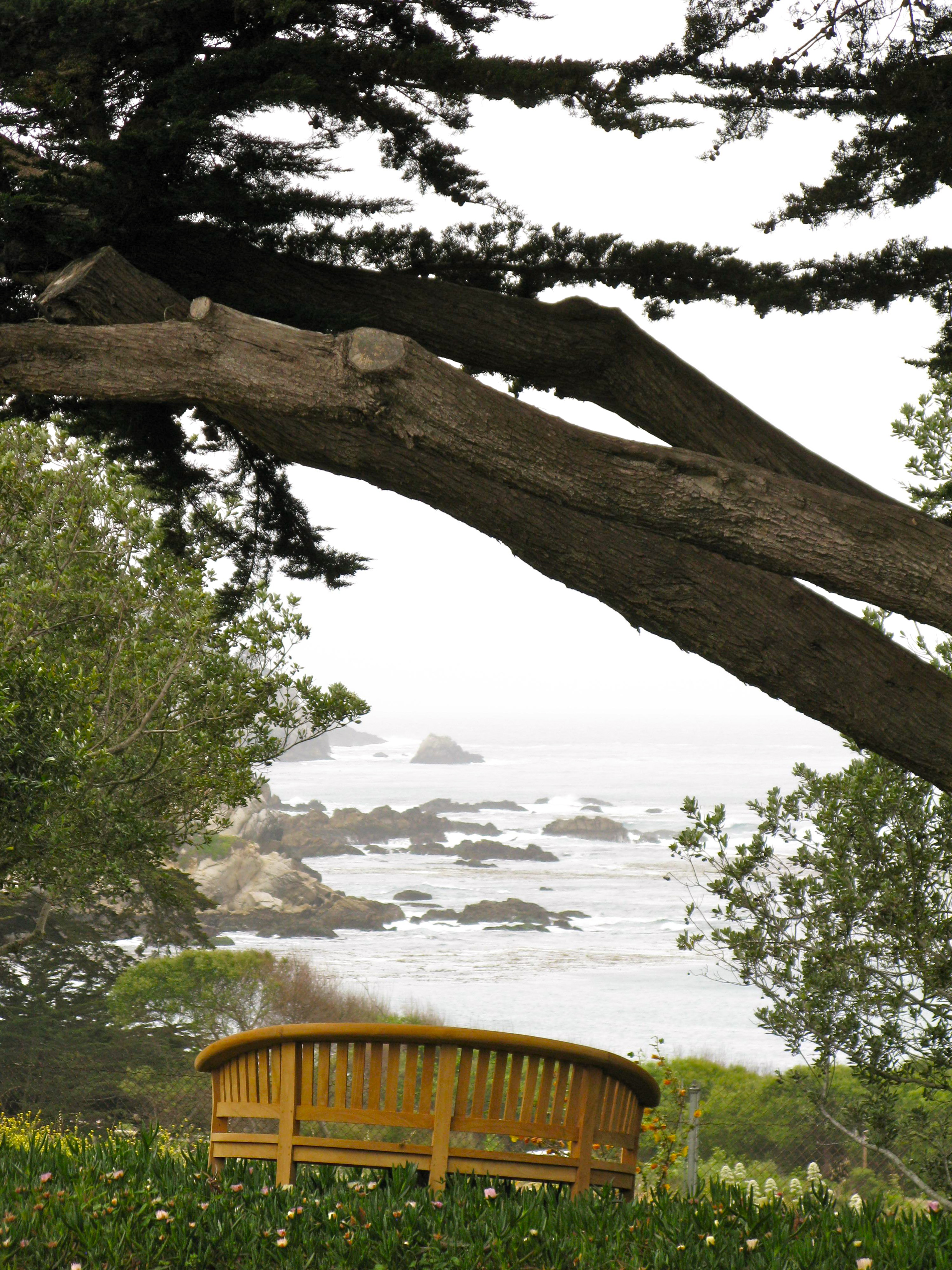 In front of the church is a lovely little garden that allows a view of the ocean and Point Lobos.