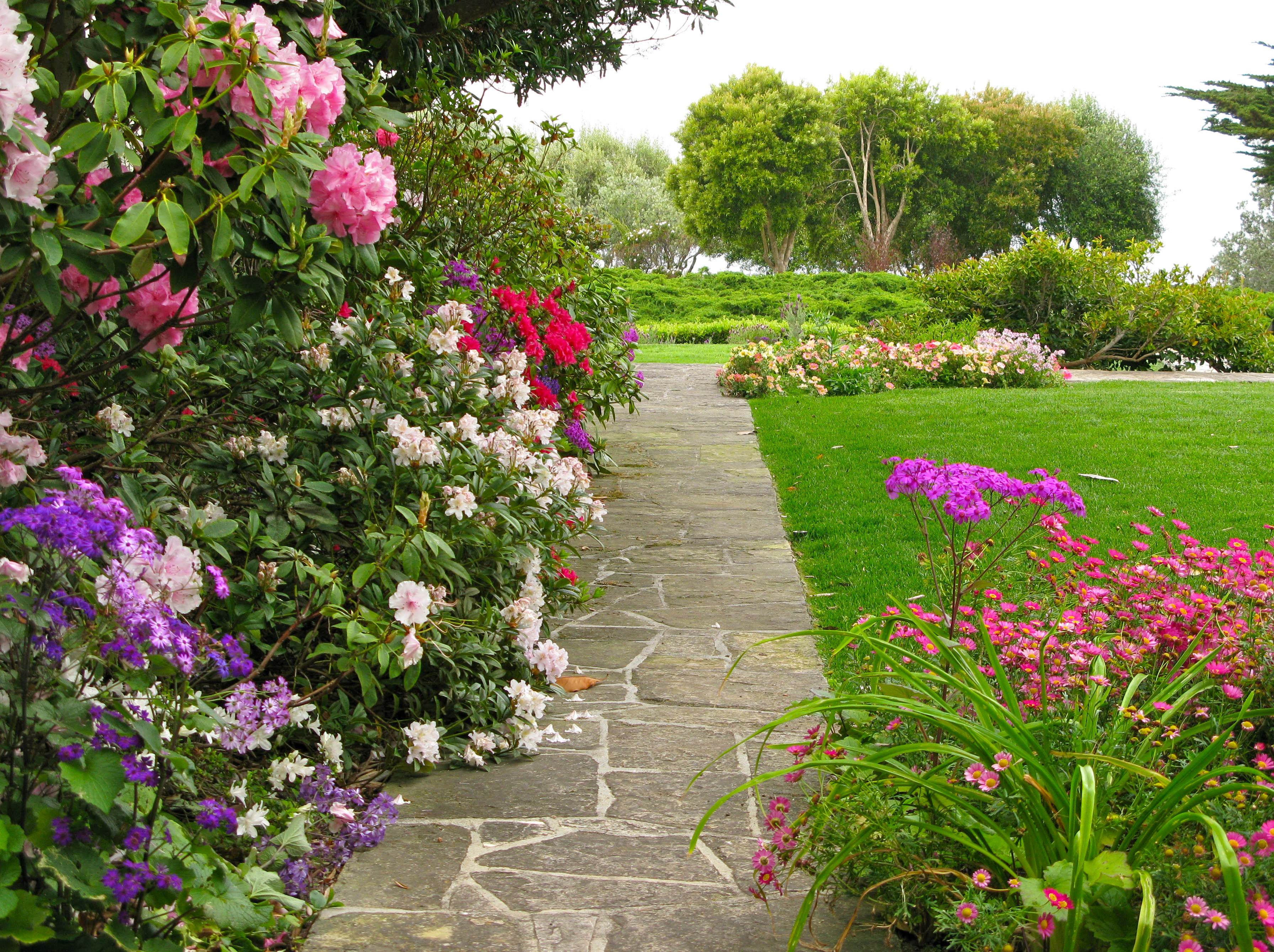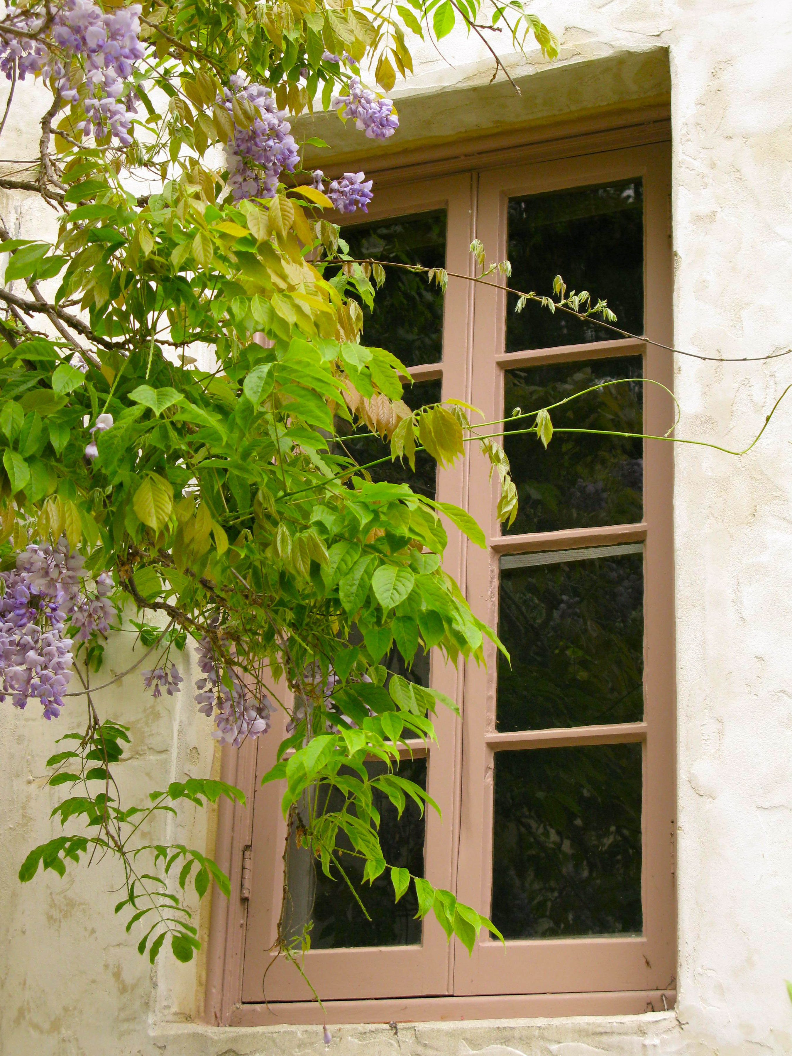 The rhododendron is in bloom as are the roses and the wisteria vines are loaded with blooms.