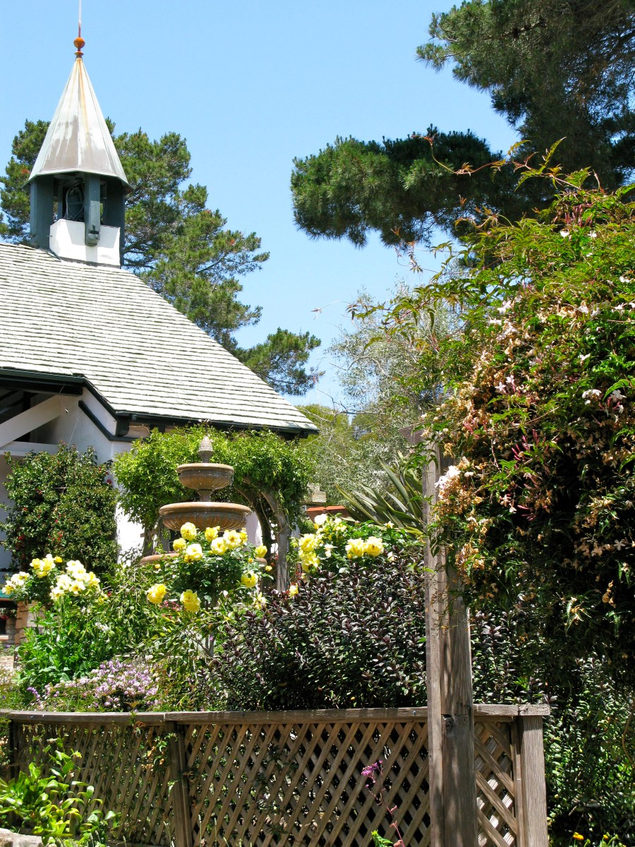 As I entered the chapel, the minister was just about to close and lock the door.  He regretted cutting my visit short, and so invited me to “ring the bell” in the Bell Tower. What a treat!  Pull hard on that rope and hear the joyous sound.  The steeple, the first one in Carmel, houses “THE BELL”. It was given to the church by anonymous villagers. In earlier days it served Carmel for fire and emergency calls.