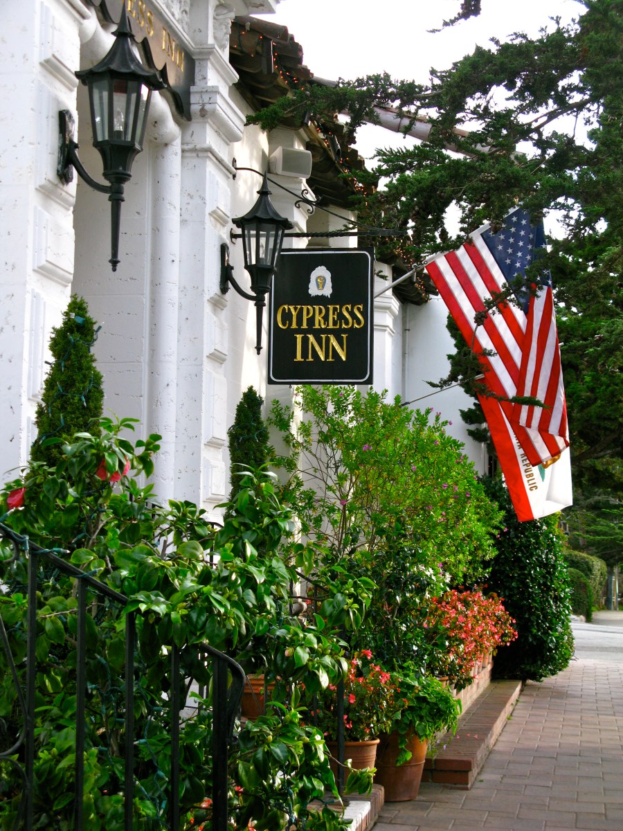 Once in a while, I go into the church to enjoy the beautiful stained glass windows. This is a popular place for weddings. Up go the decorations, music sounds from the church and then the bride and groom exit triumphantly. Often member of the wedding party stay at the Cypress Inn which is across the street.