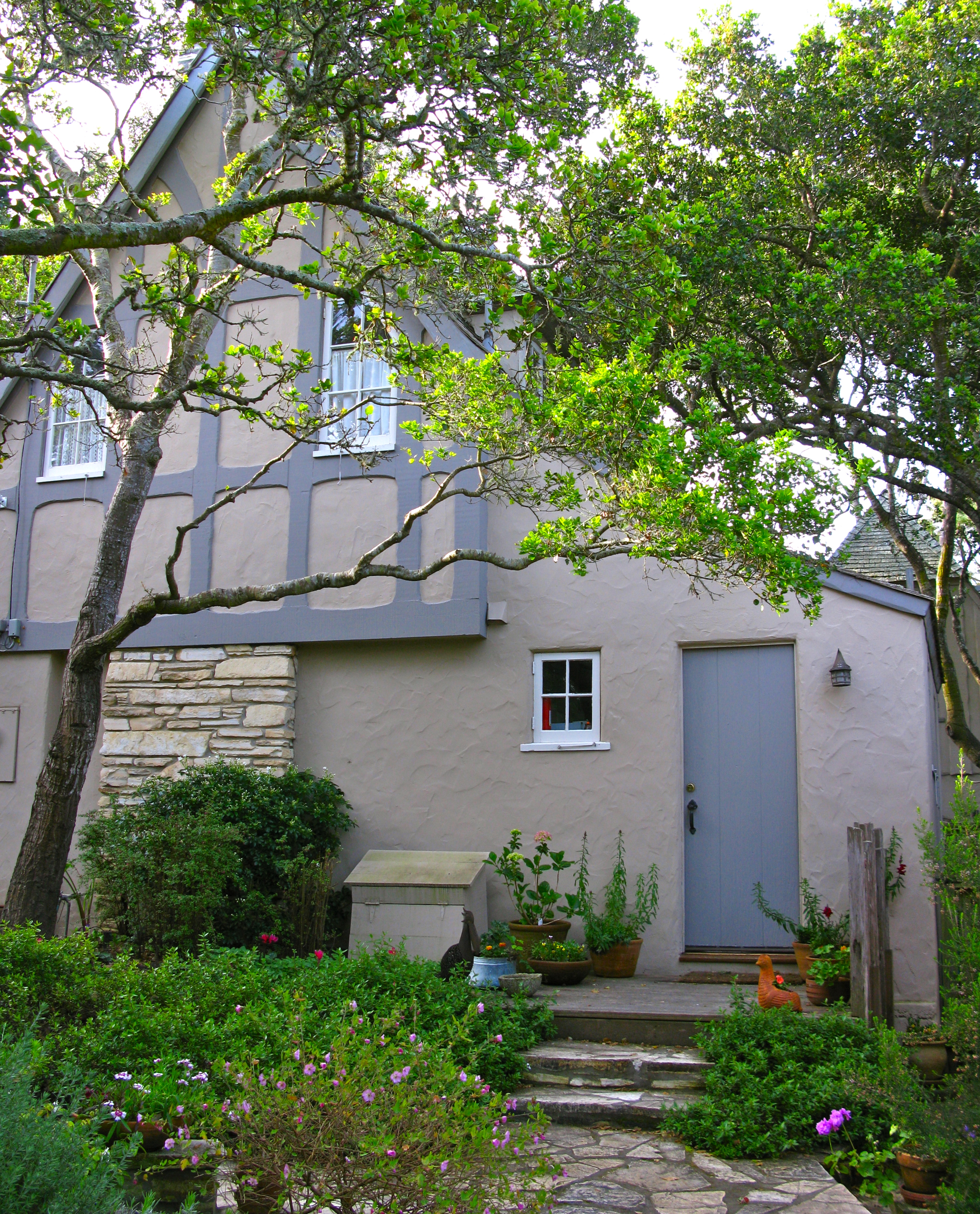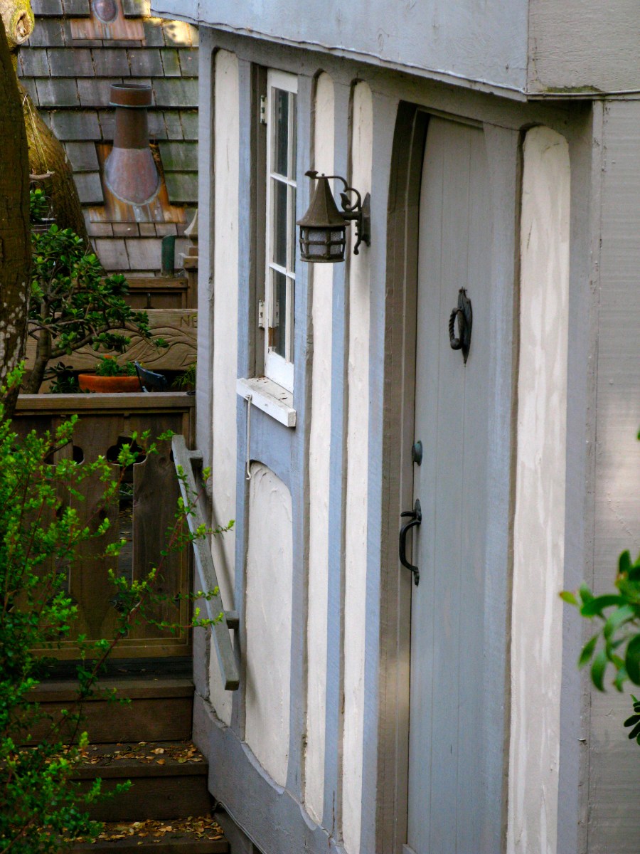 The meter reader moves across the Carmel Stone path that weaves through the garden of The Birthday House. This time I stay on the street and use my zoom lens. I figure it is only a matter of time before someone calls the cops and I make the Carmel Pine Cone police blotter. My husband will not be pleased.
