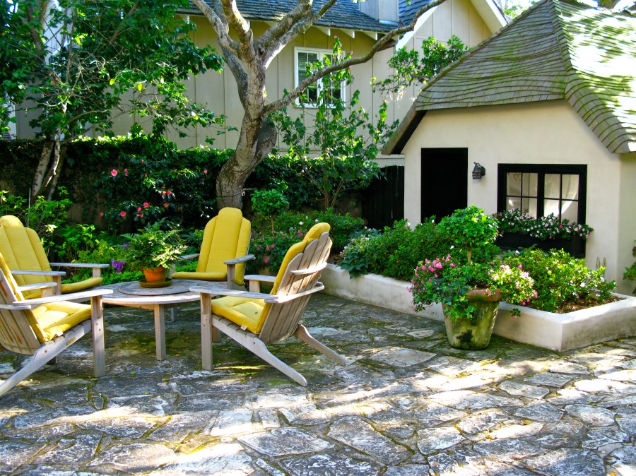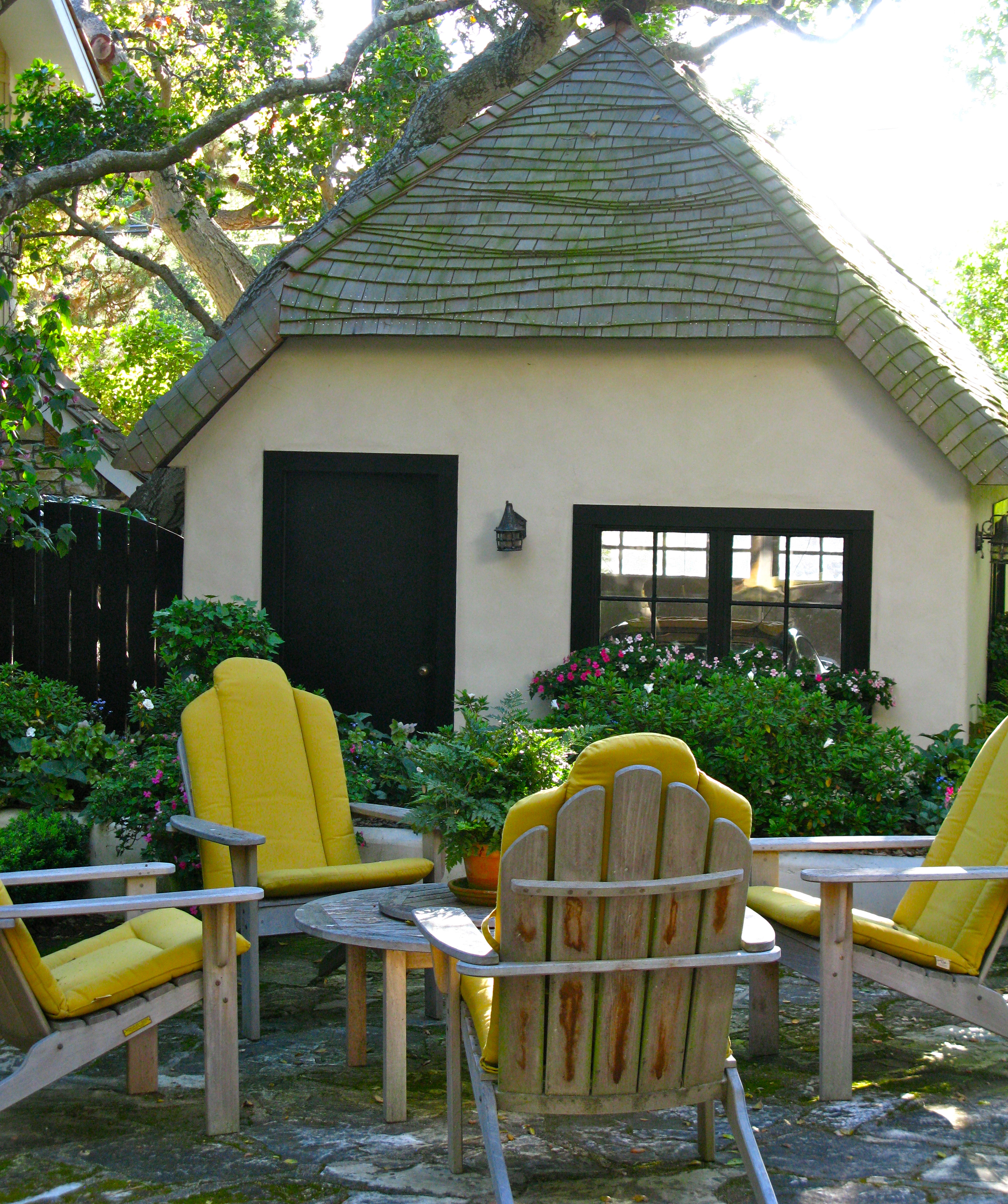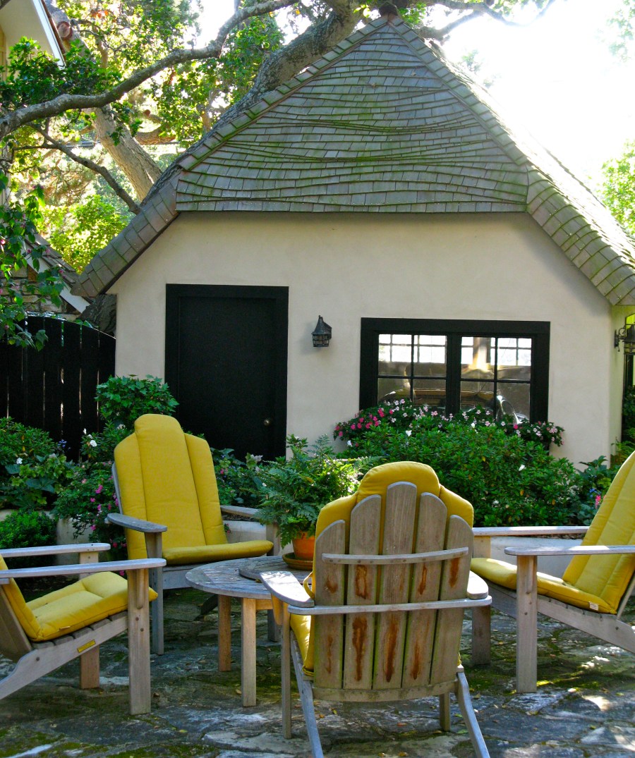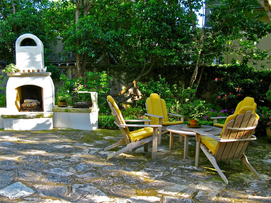 They have an outdoor fireplace. Carmel weather is perfect for using the fireplaces as evenings are cool. I note that even the house pet has a container out here thoughtfully shaded from the sun with a towel.