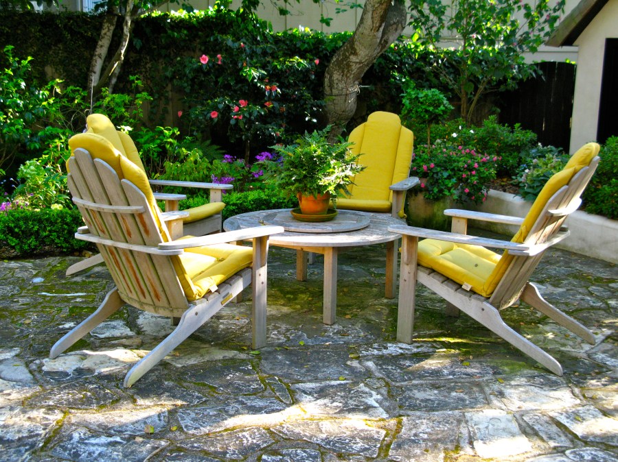 At this point he departs and I am left to take my time. My view and my camera travel slowly around counterclockwise. The only thing I like more than Adirondack chairs are Adirondack chairs in a circle with inviting cushions on them.