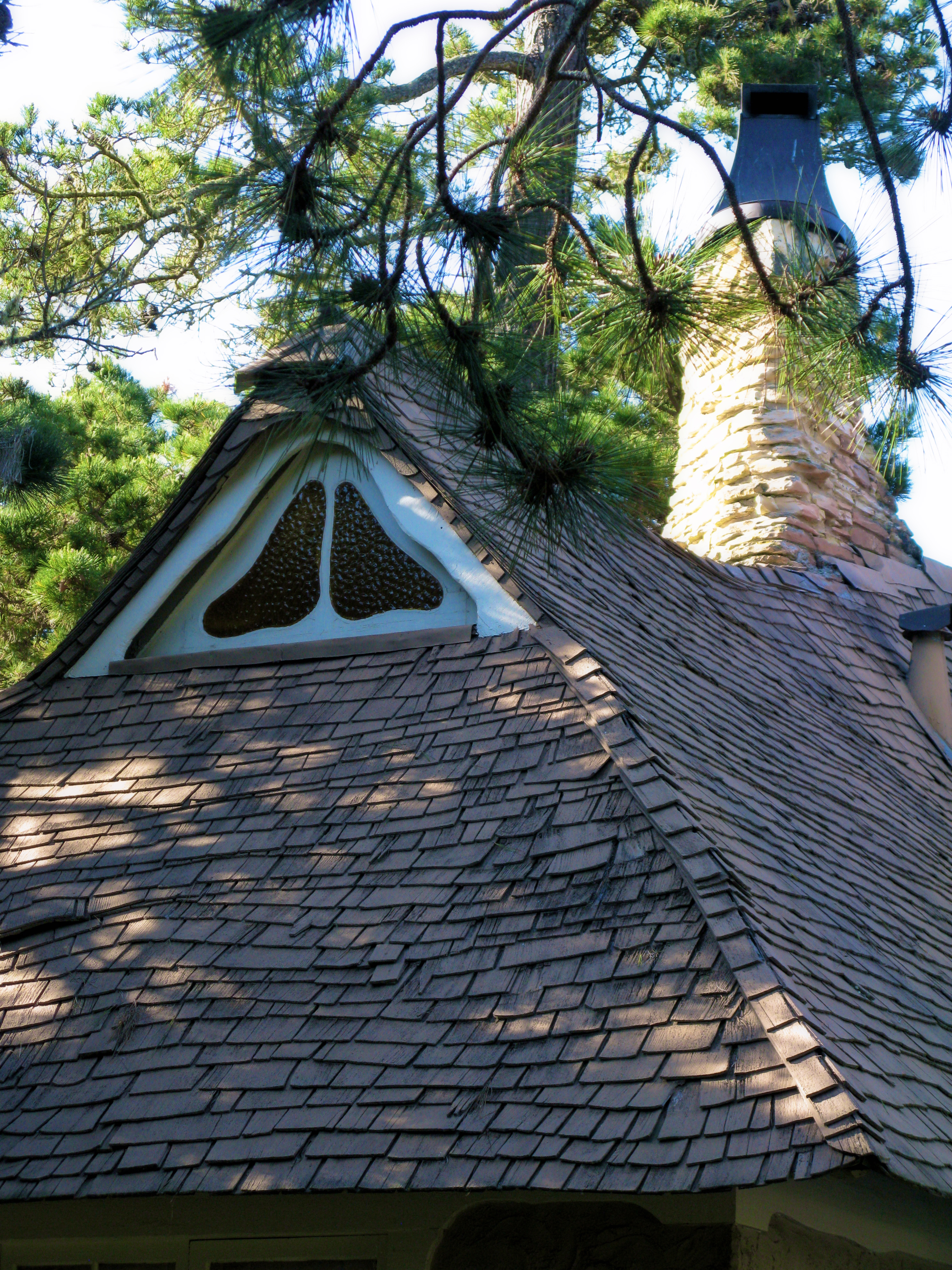It is appropriately named Marchen( or fairytale) Haus. Hugh built this cottage in 1928 and it got lots of attention from the townspeople. One local critic noted,”The chimney is neither round, square or rectangular. It is fantastic in its grotesque mis-shapen form.”