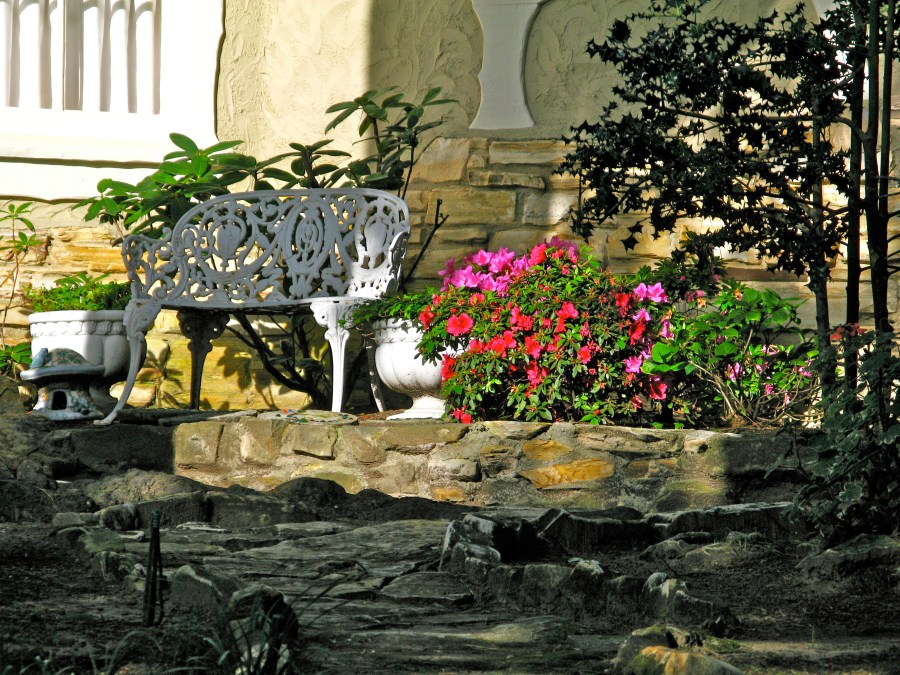 She changes wreaths on the door with the seasons and the plantings are colorful.