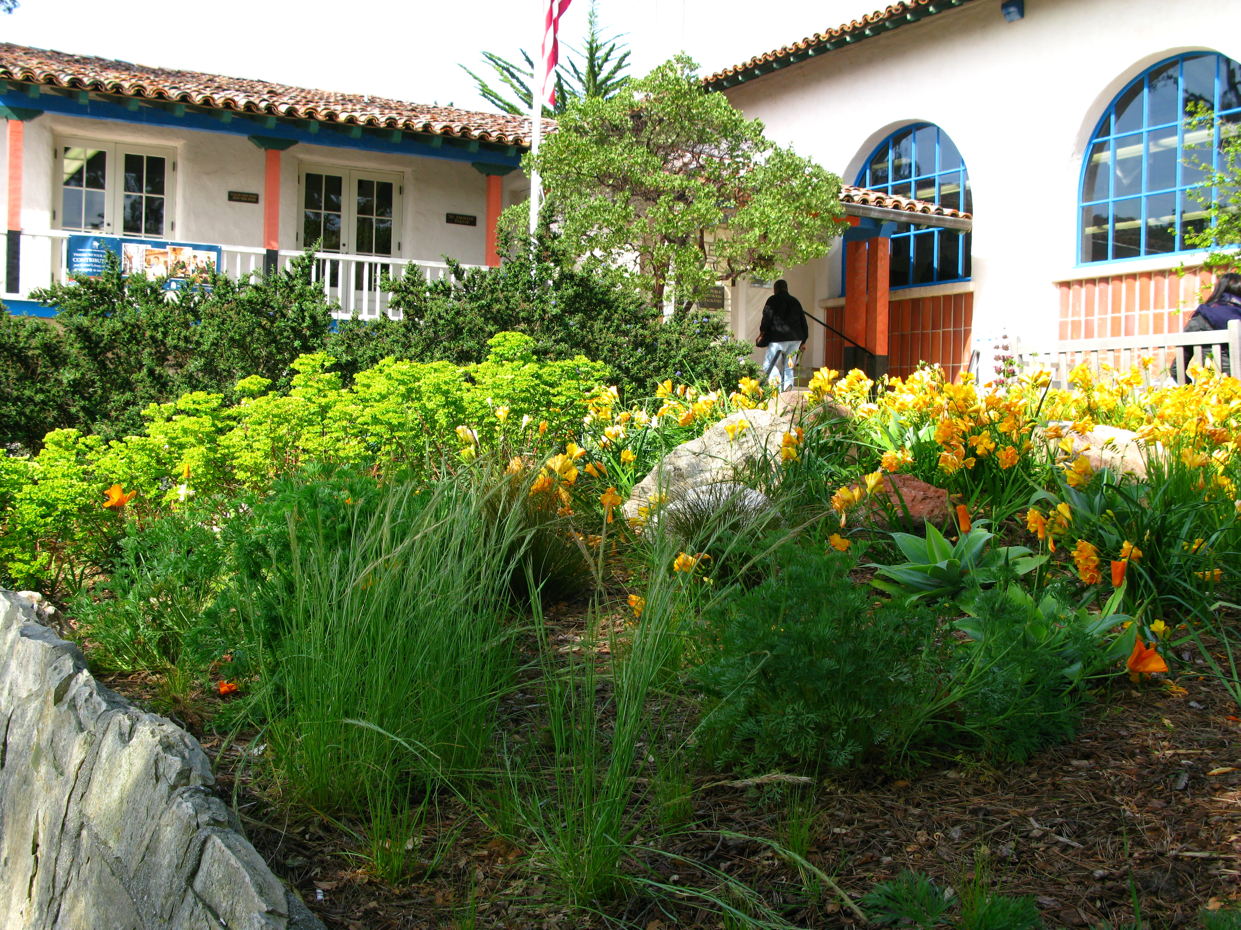 When we go out this March, I also find out that Bill can use the card for access to the internet to print our boarding passes for our home trip and we check out many DVD’s to watch after dinner. This time I am treated to a look at the new landscaping with its native plants.