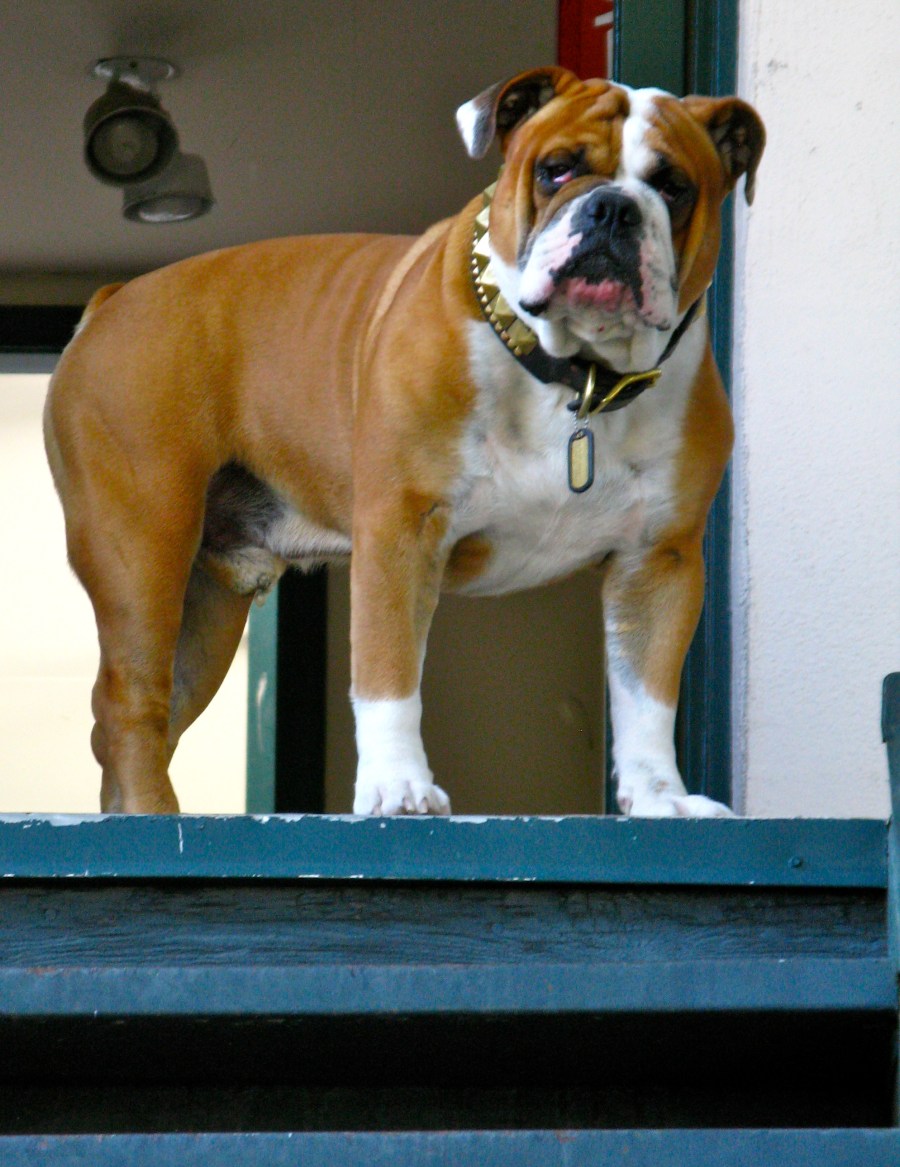 Today, this bull-dog presides over the courtyard.