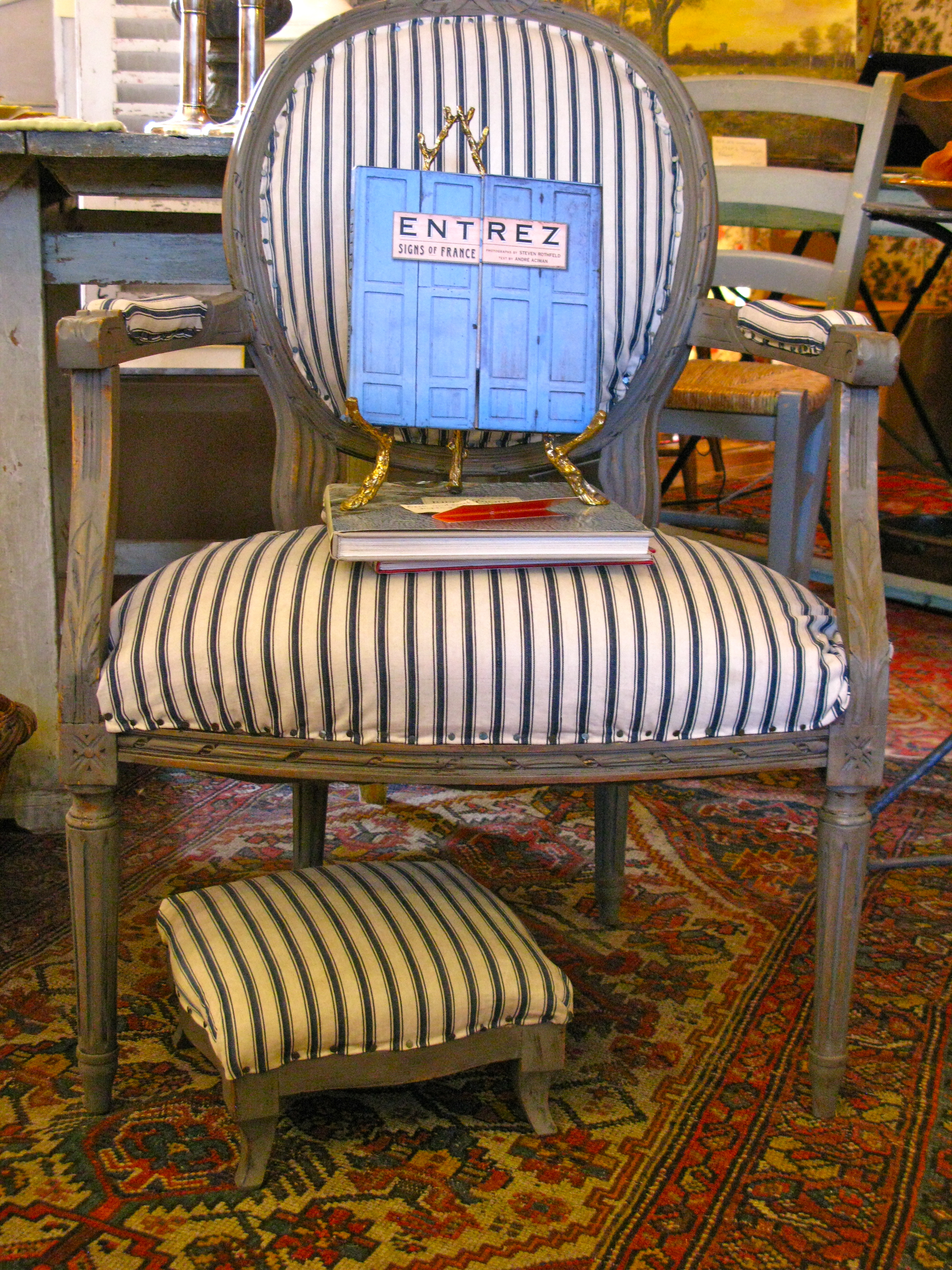 You can find one-of-a-kind French Provincial antique chairs, farm tables