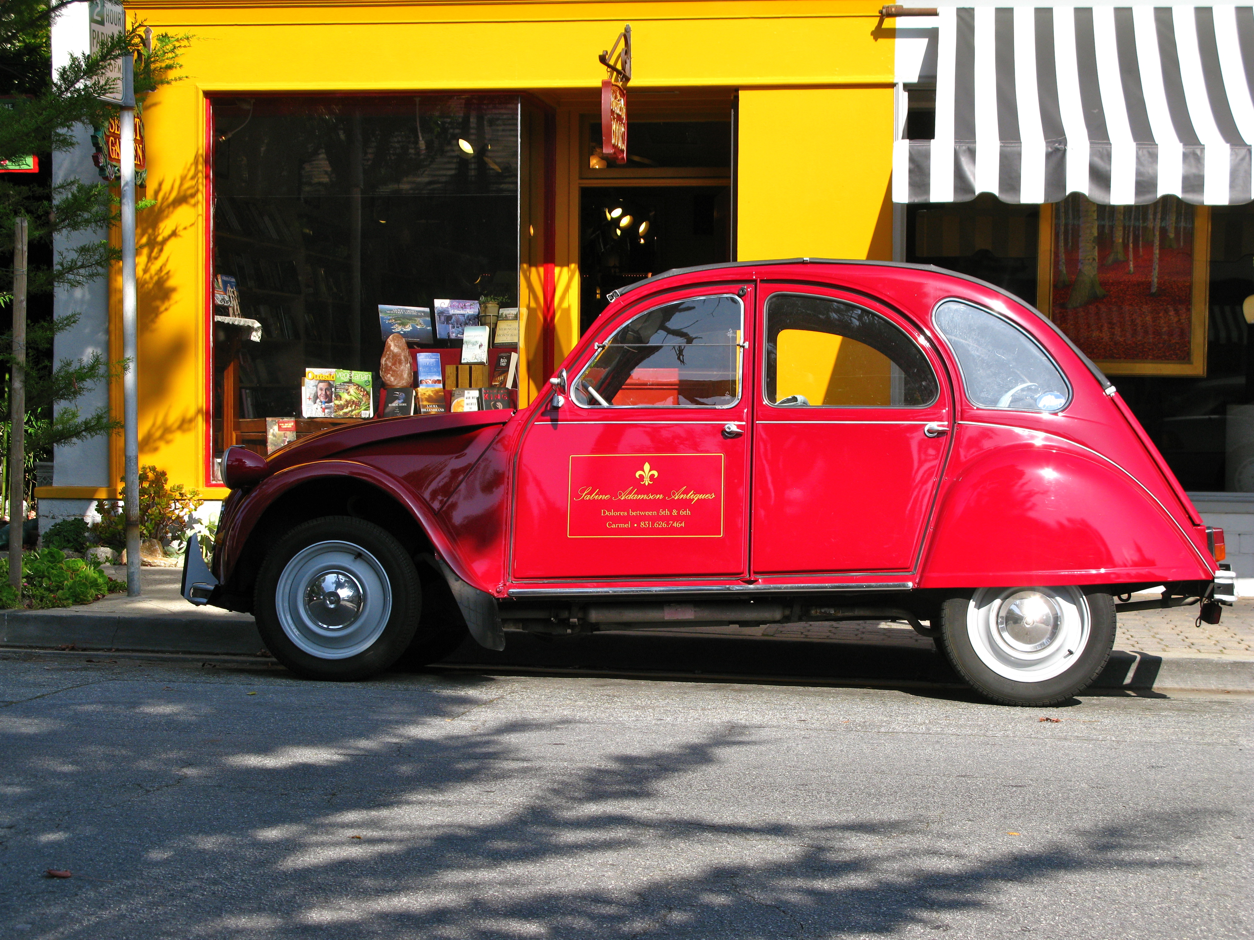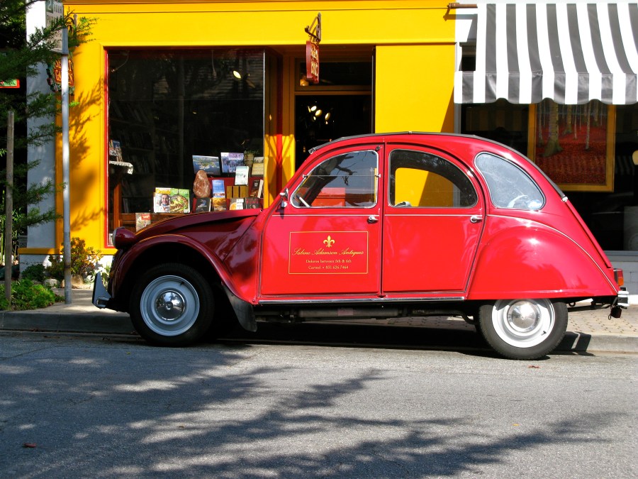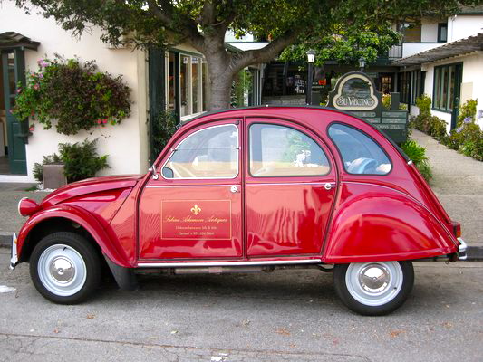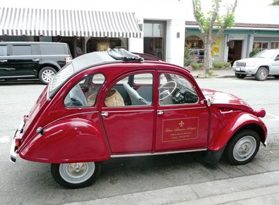 Her husband co-owns the shop and is quite active in the Carmel Parks and Recreation Board. They own this darling, bright red Citroen which Bill and I see in the Carmel Concours each year.
