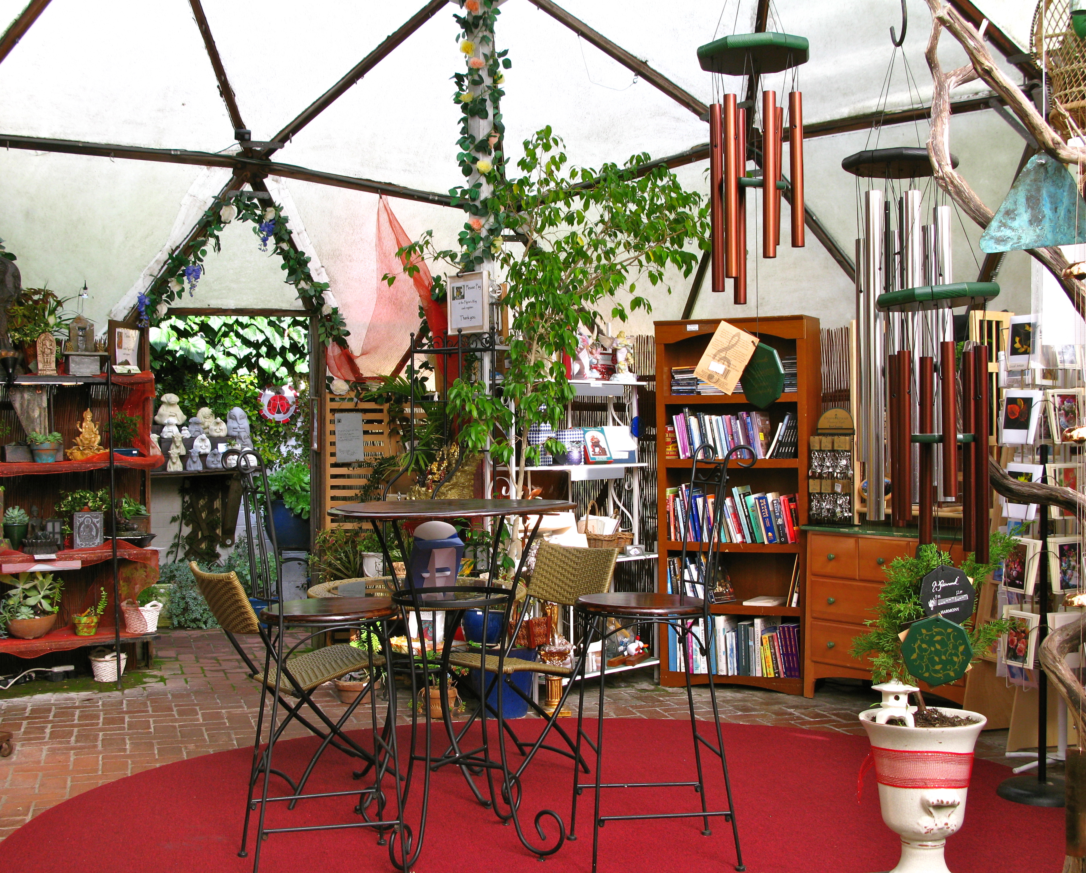 The center of the courtyard is a geodesic dome which shelters books, cards, music and jewelry.