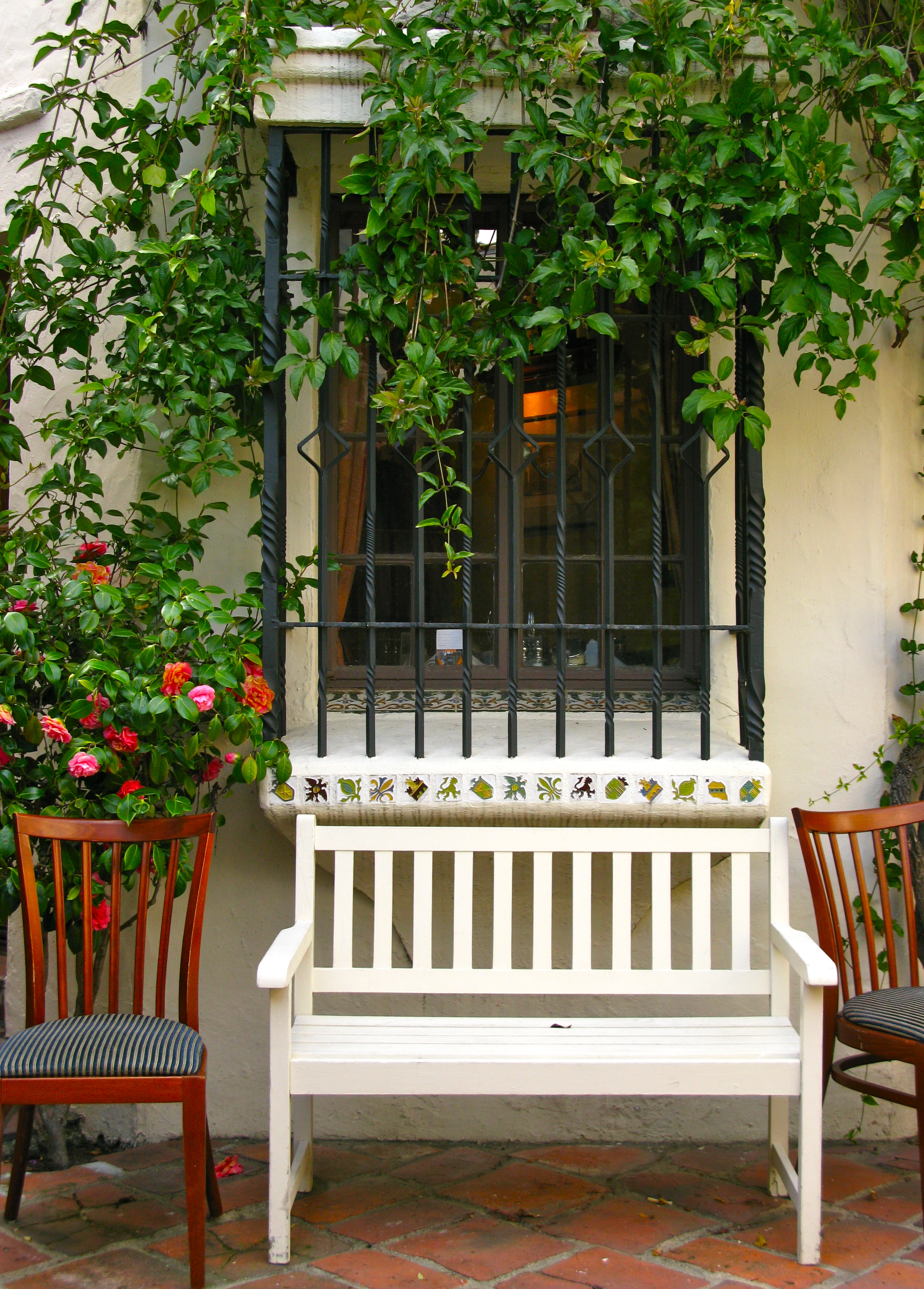 Much of Carmel’s business district was built in the 1920’s and reflects either the Tudor Revival Style that I see in The Court of The Golden Bough or the Spanish Colonial Revival style in this beautiful courtyard.
