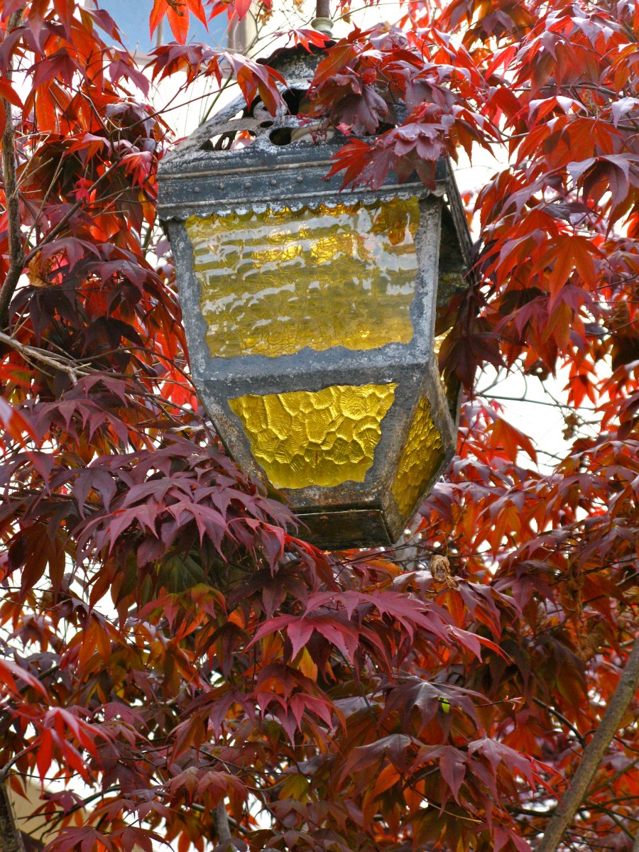 I love the way this light is alway enveloped by the leaves of the Japanese Maple.