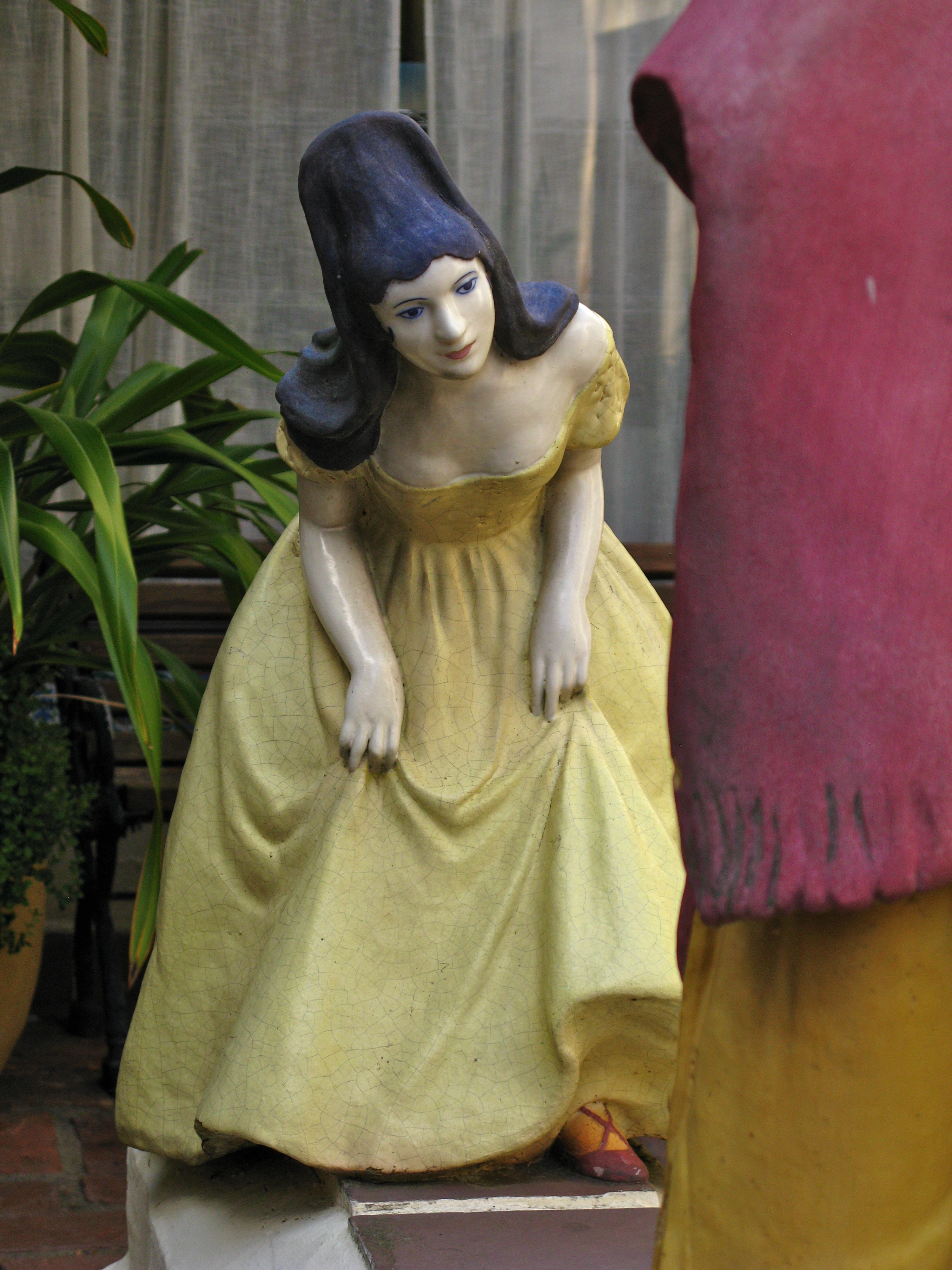 Under this wonderful lantern hung from carved wood, this lovely woman is greeted by this courtly gentleman.