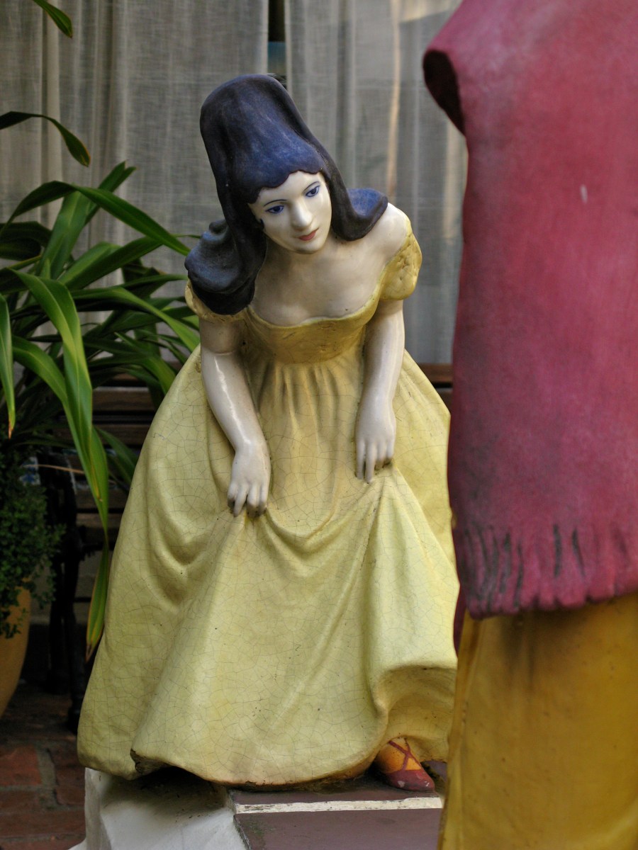 Behind them a fountain with a tiled back splash makes a sweet sound.