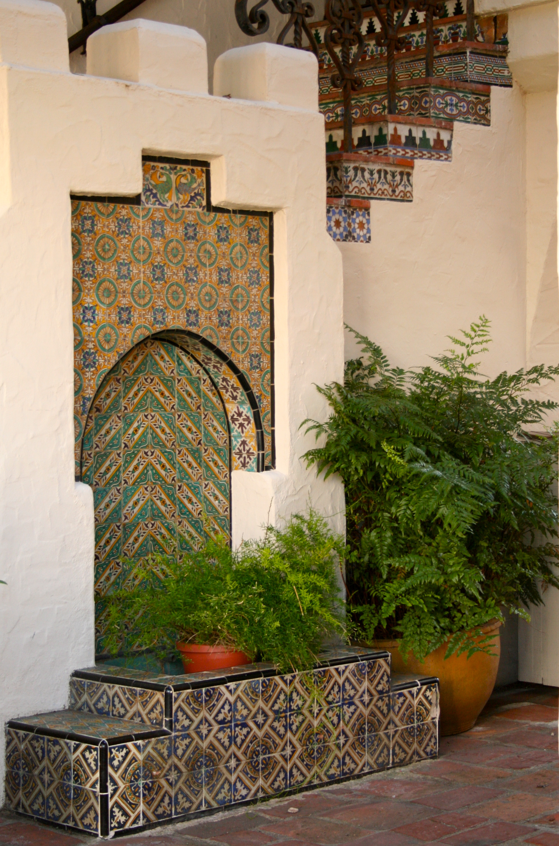 and fountain. Many of these tiles came from Spain.