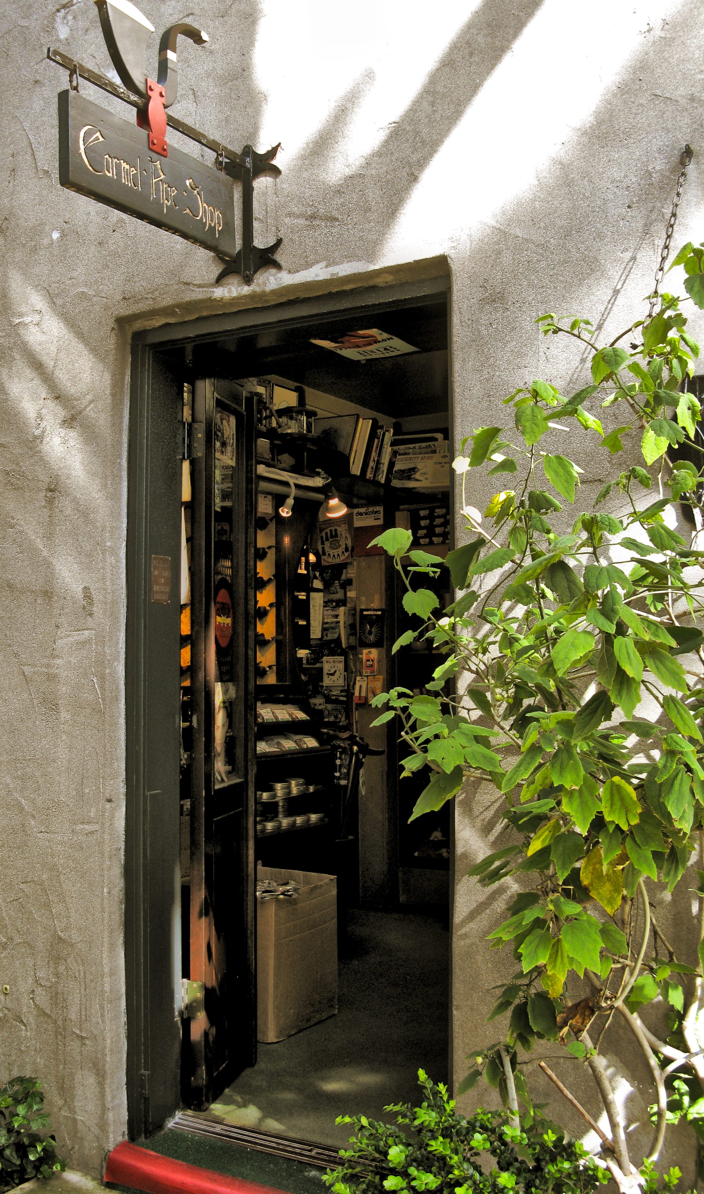 It is now the entrance to The Carmel Pipe Shop. The bay window display is quaint