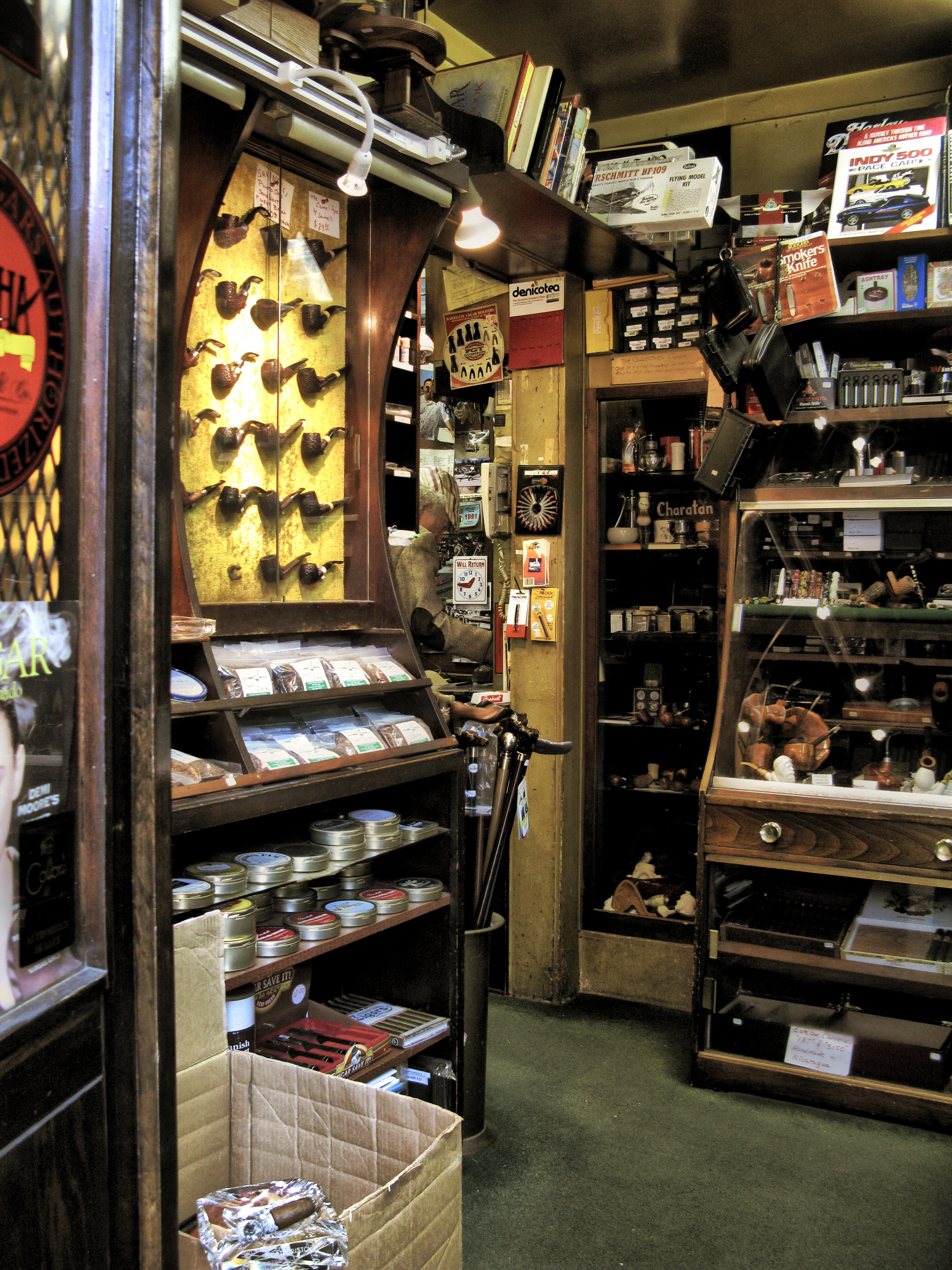 The proprietor is Mr. Dick Hardin, just the second owner of the shop. He has been in residence for over 30 years and loves to tell stories about Carmel almost as much as he loves to sell pipes, tobacco tins and blends and cigars.