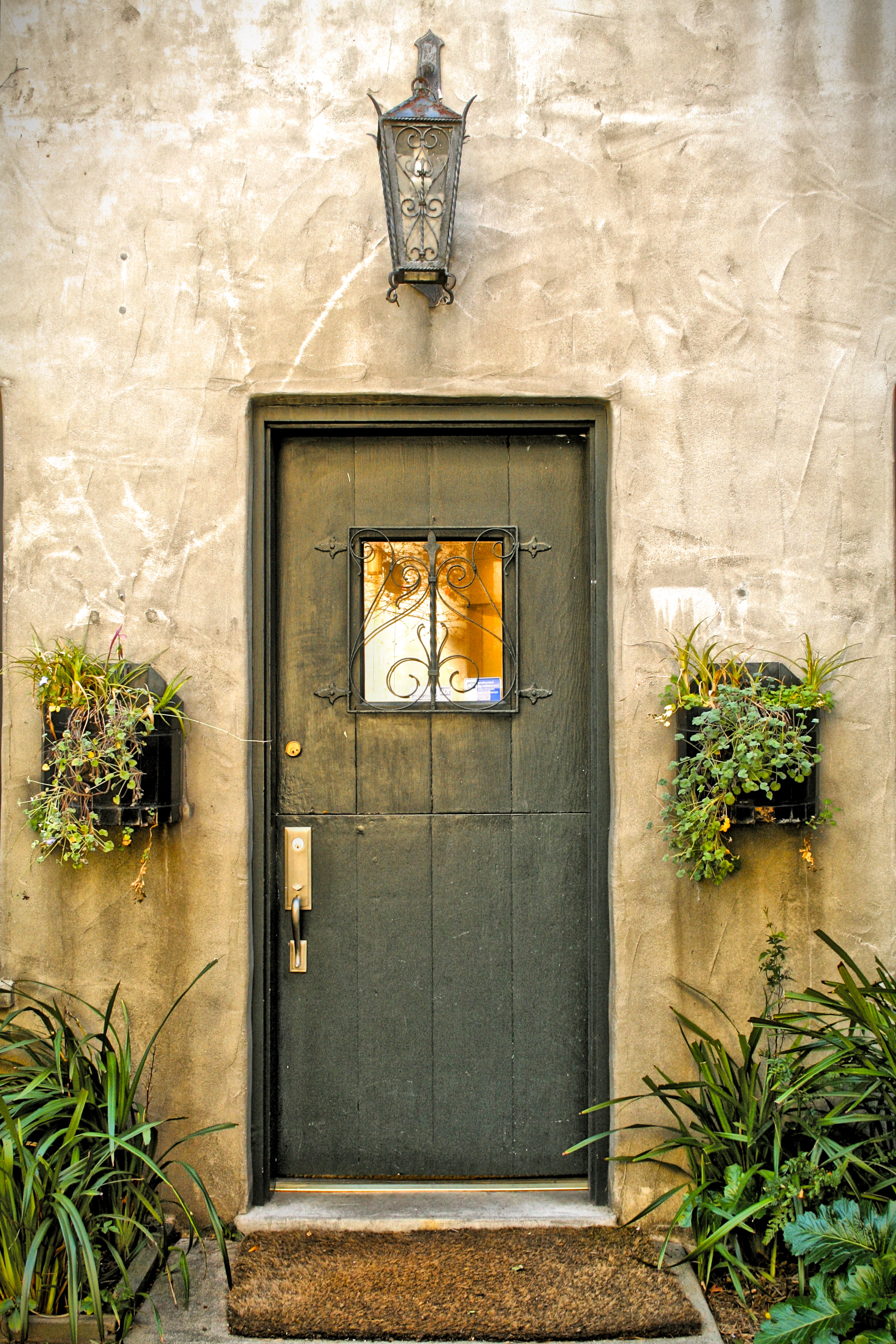Looking to the west is a dutch door set into the thick stucco wall.