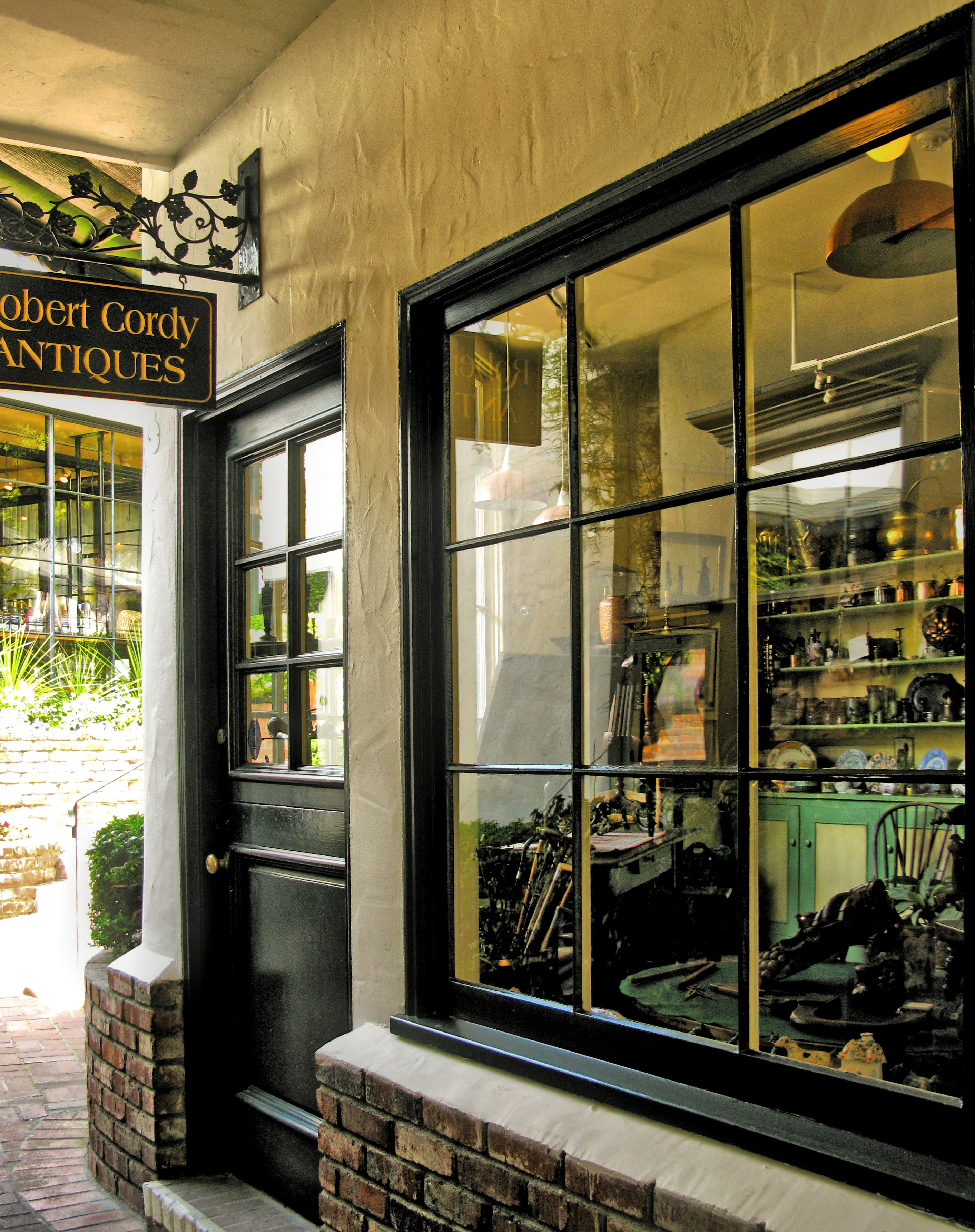 I climb the brick staircase, stopping to window shop at Robert Cordy Antiques.