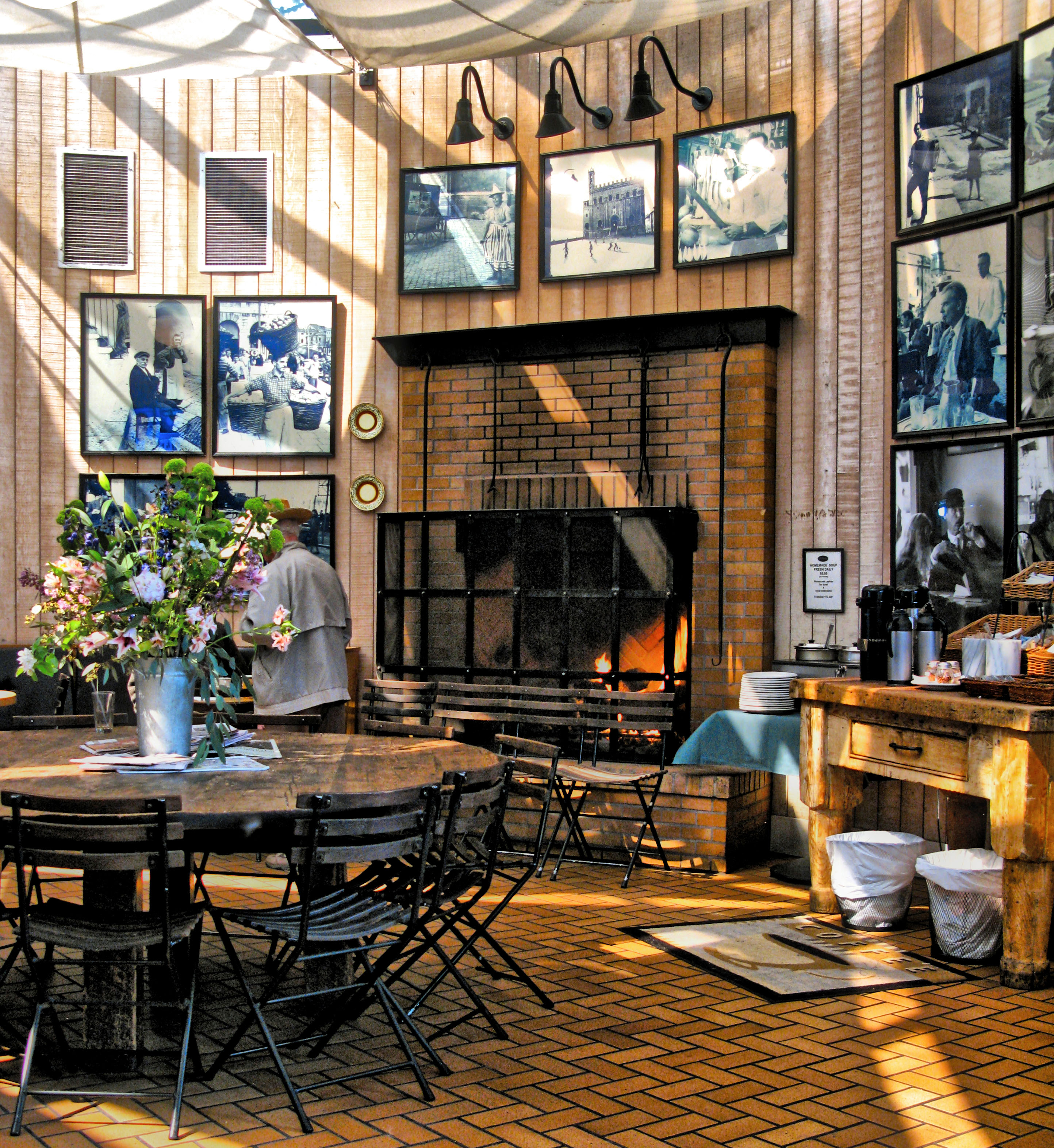 This round table is often filled with people and spread with newspapers from all over the world. It is a favorite place to have coffee and start the day.