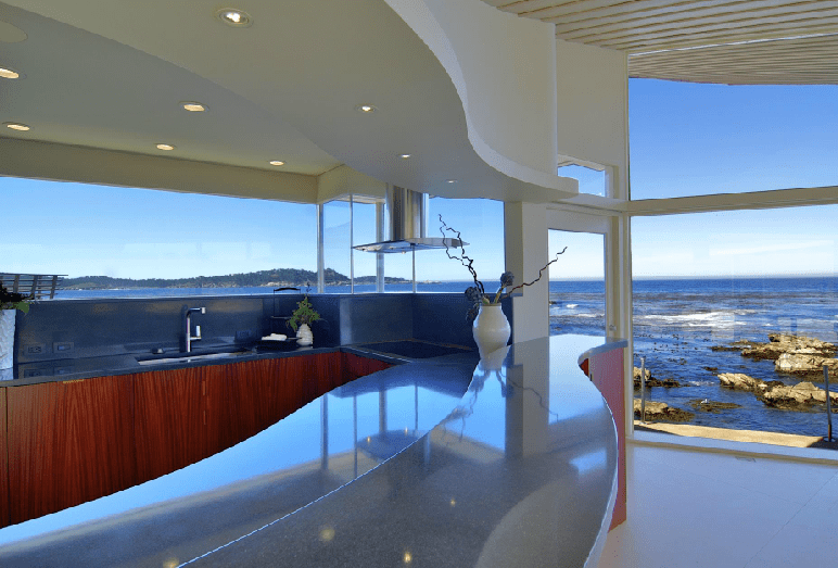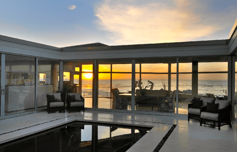 and during the day while offering spectacular views of the ocean through walls of glass.