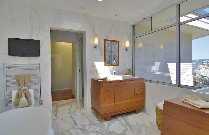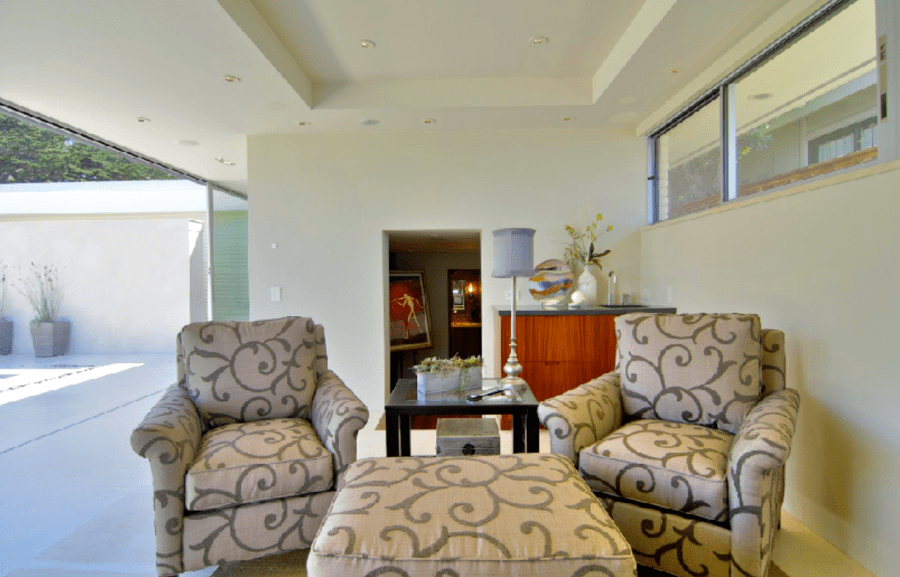 Time and the harsh environmental conditions took it’s toll on the exterior of the home. Many changes to the interior took place from the original design such as the demolition of the chimineyless circular fireplace in the living room and the covering over of a sunken seat area along the window overlooking the ocean. The interior Courtyard/pool area had been changed to a flagstone patio after filling in the original kidney-shaped swimming pool.