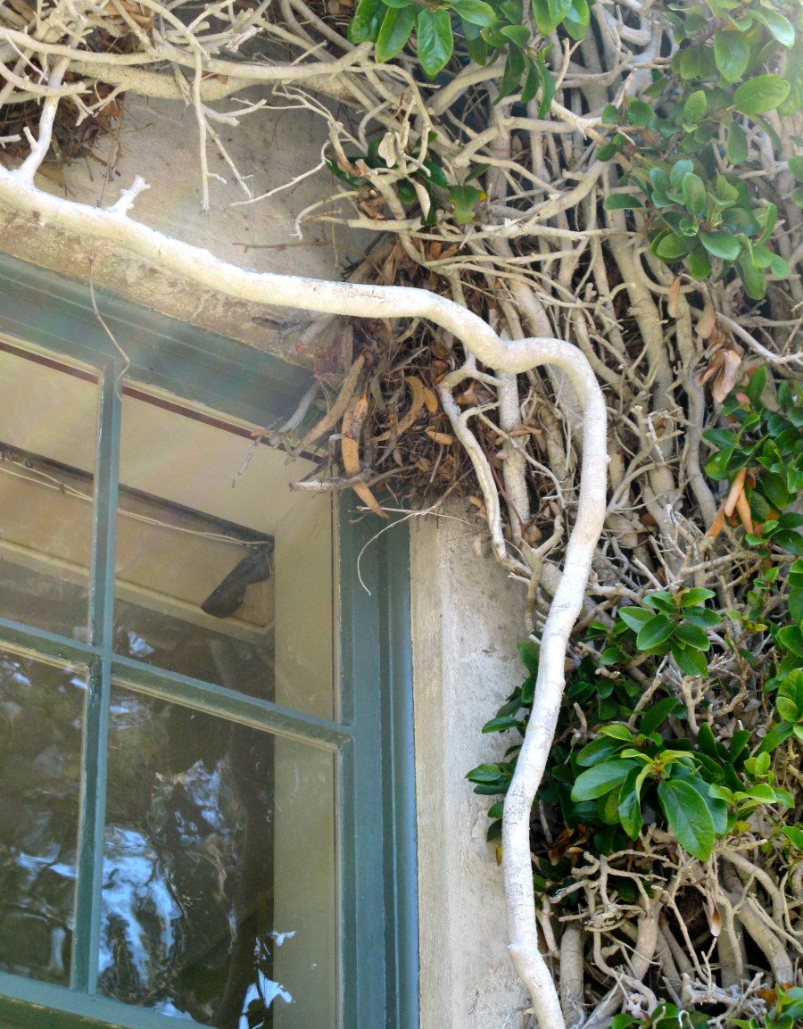Windows can barely keep out the ivy.