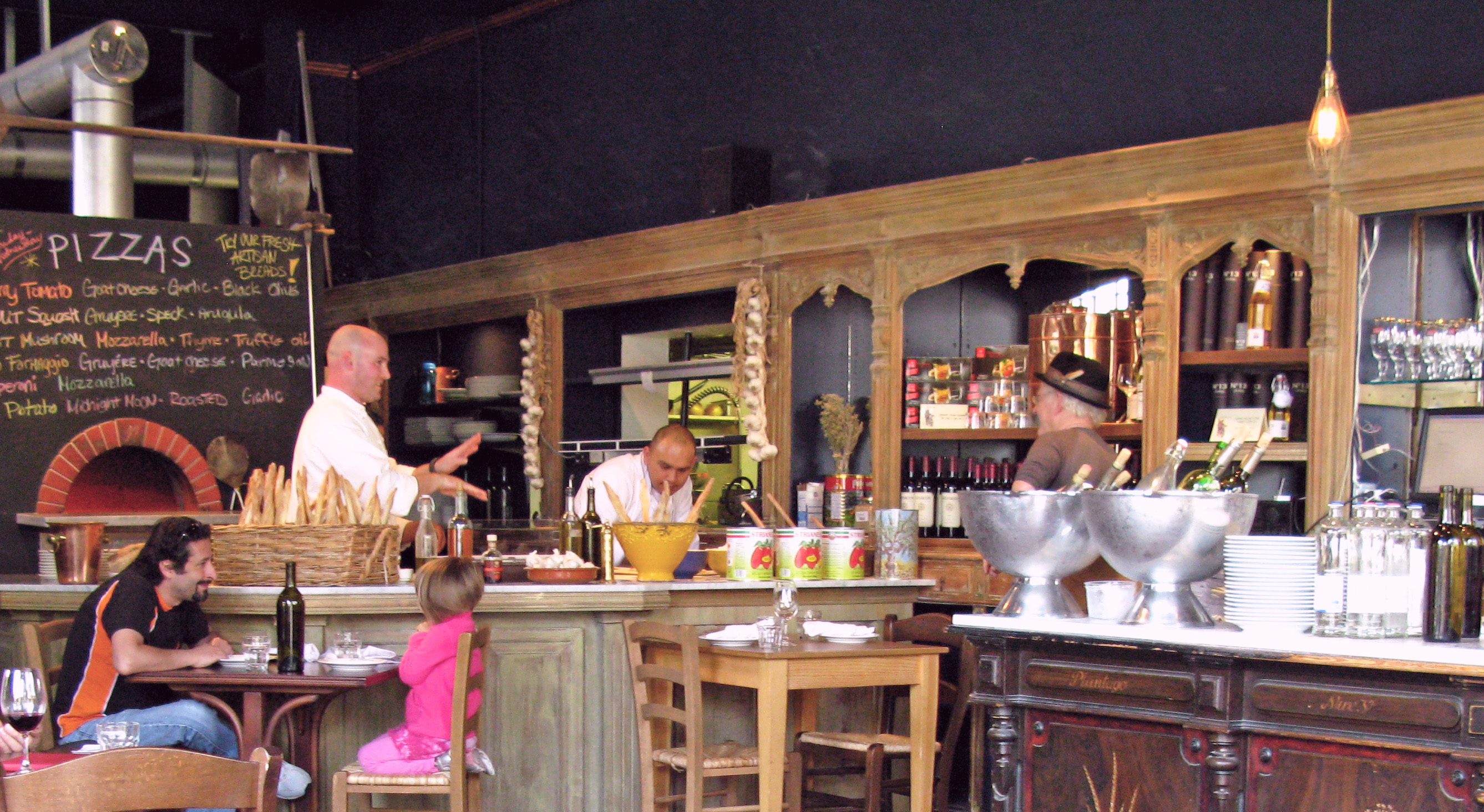 and has formidable wood ovens called “falling ovens” because the temperature starts very high and falls as the bread cooks.