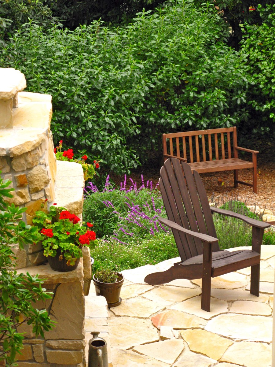 Leads to a bench at the bottom of the yard