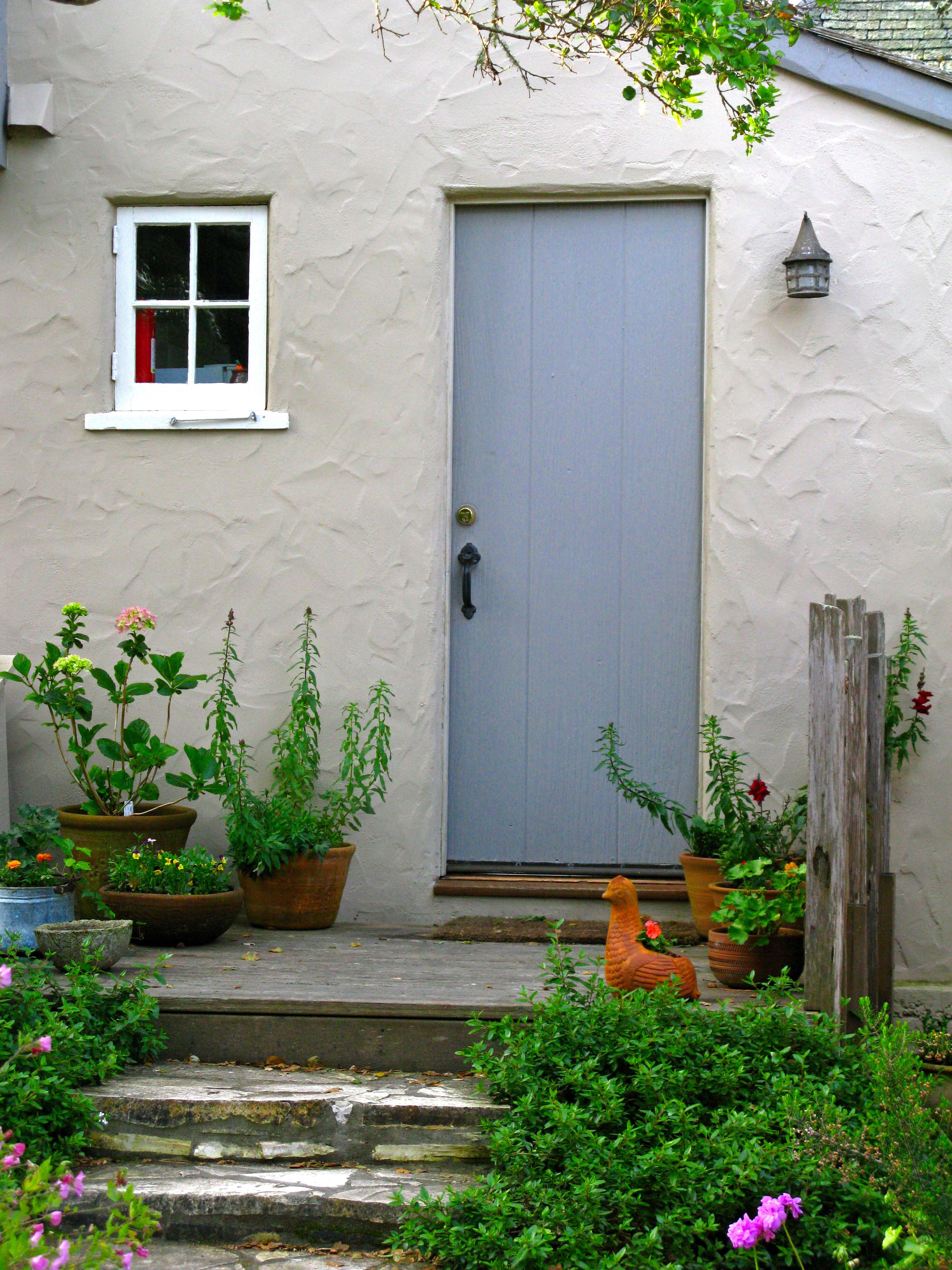 informs me that this is the kitchen door with potted herbs at the ready.