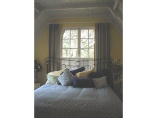 The upstairs balcony leads into a bedroom with Dormer windows.”