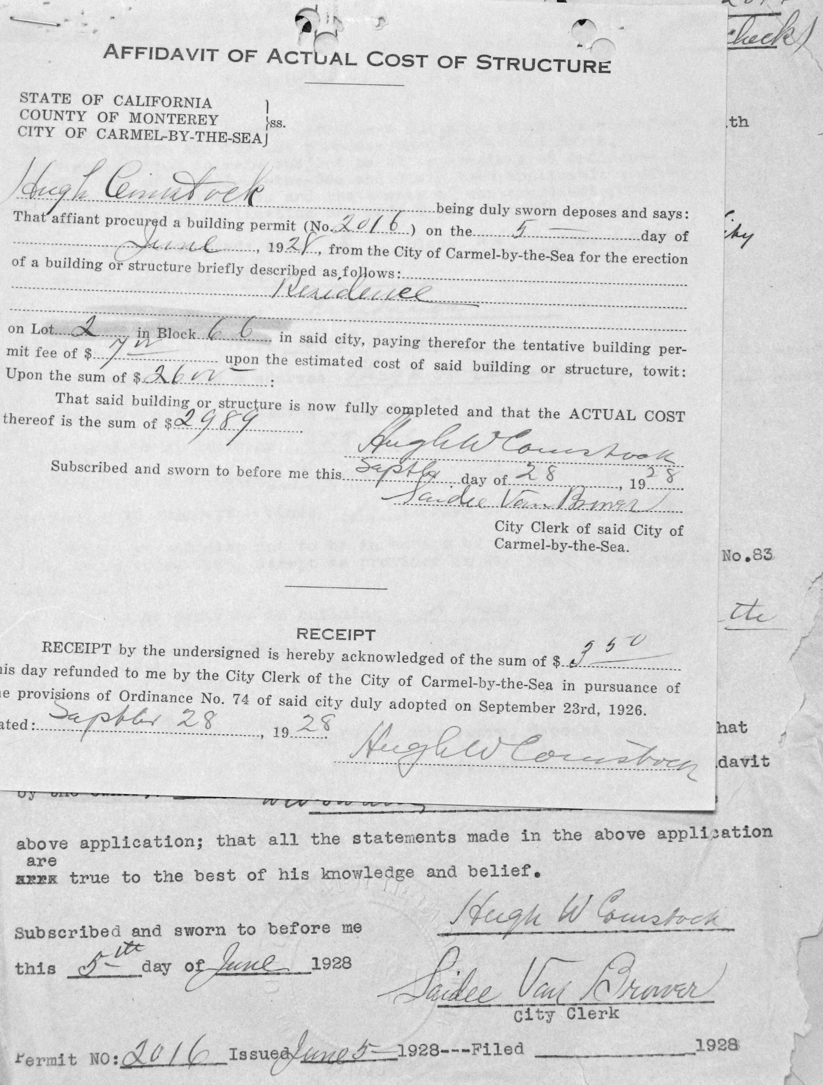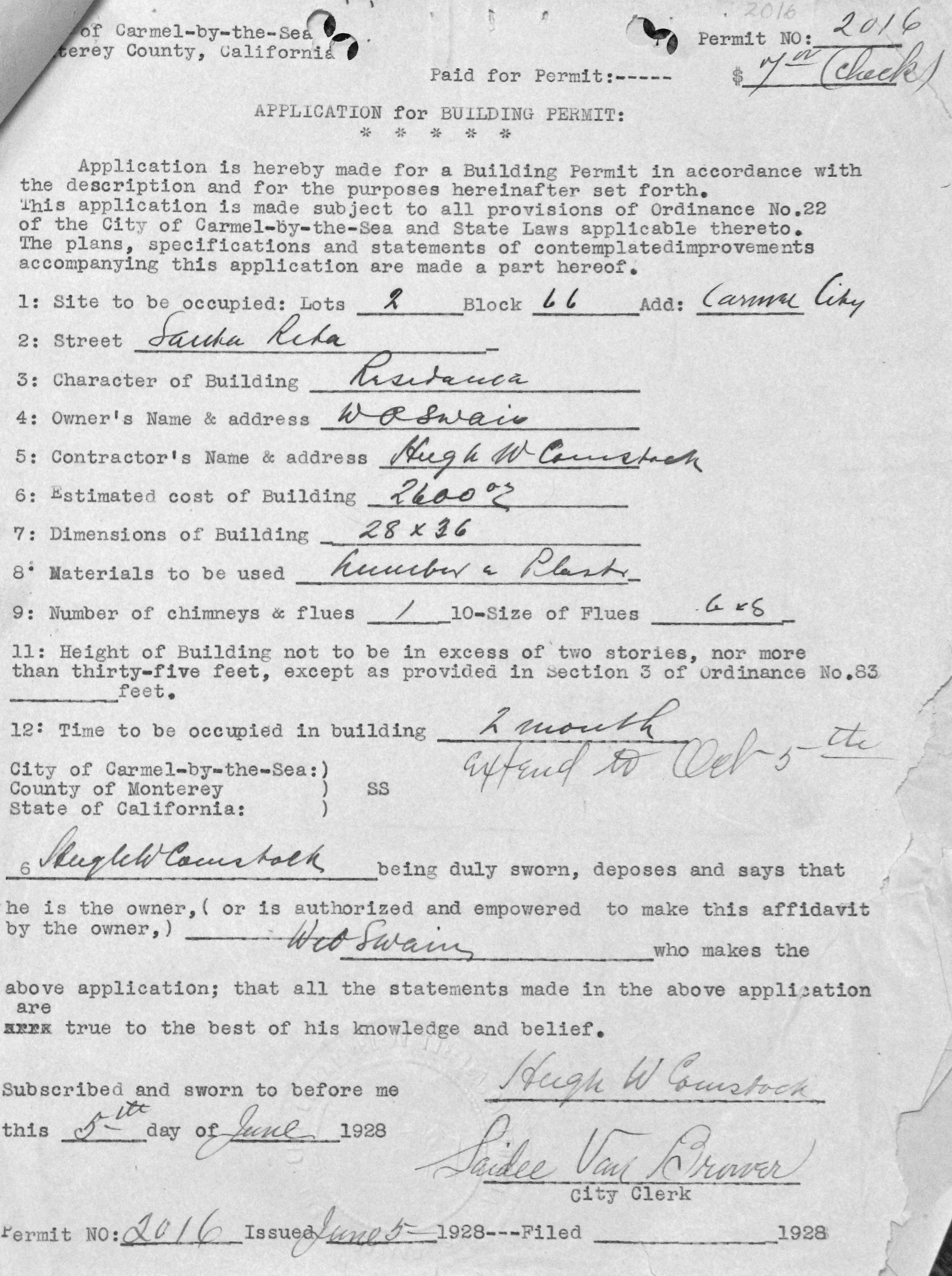 On June 5th, 1928, Hugh agrees to build yet another residence for W.O. Swain.