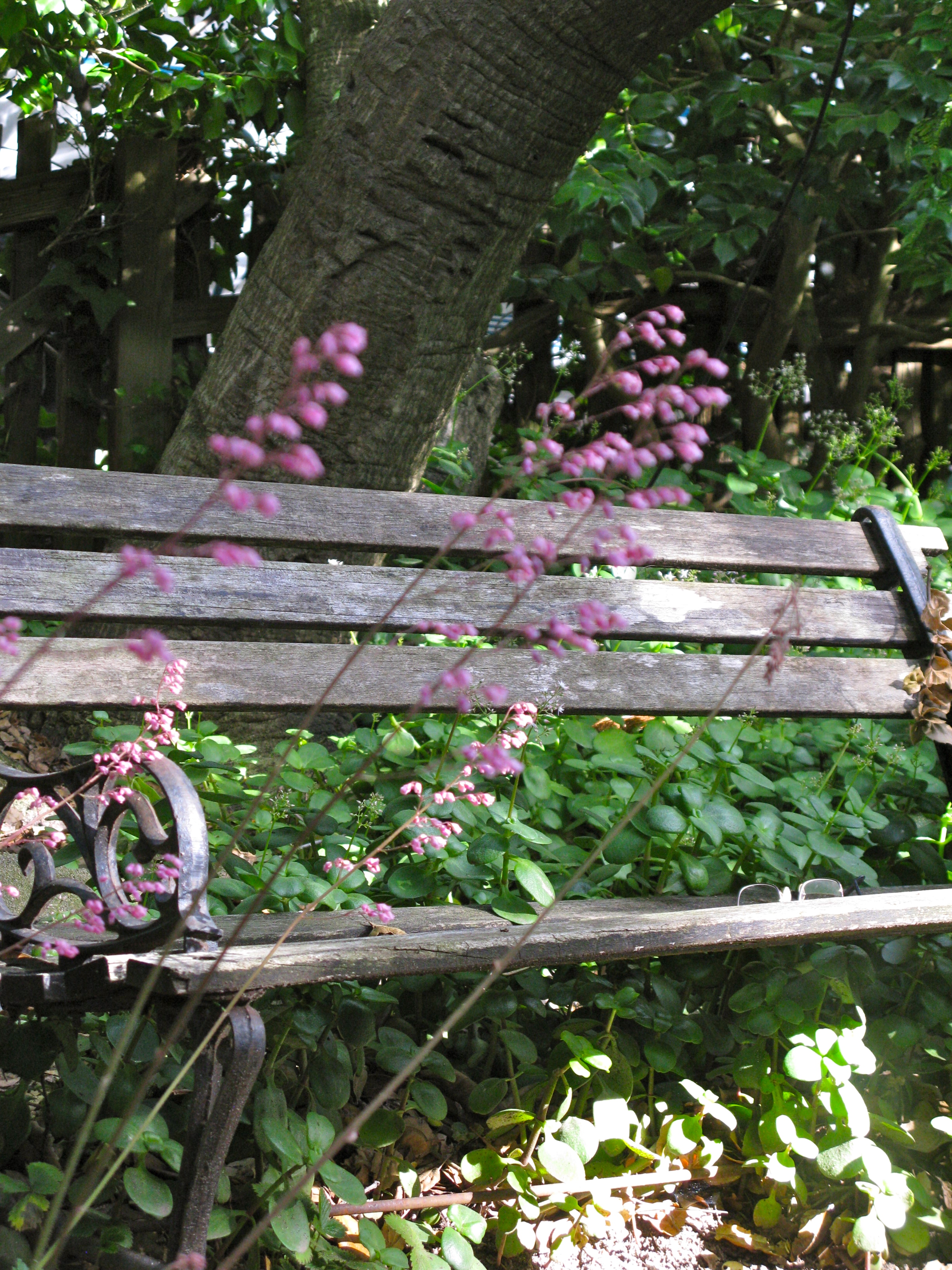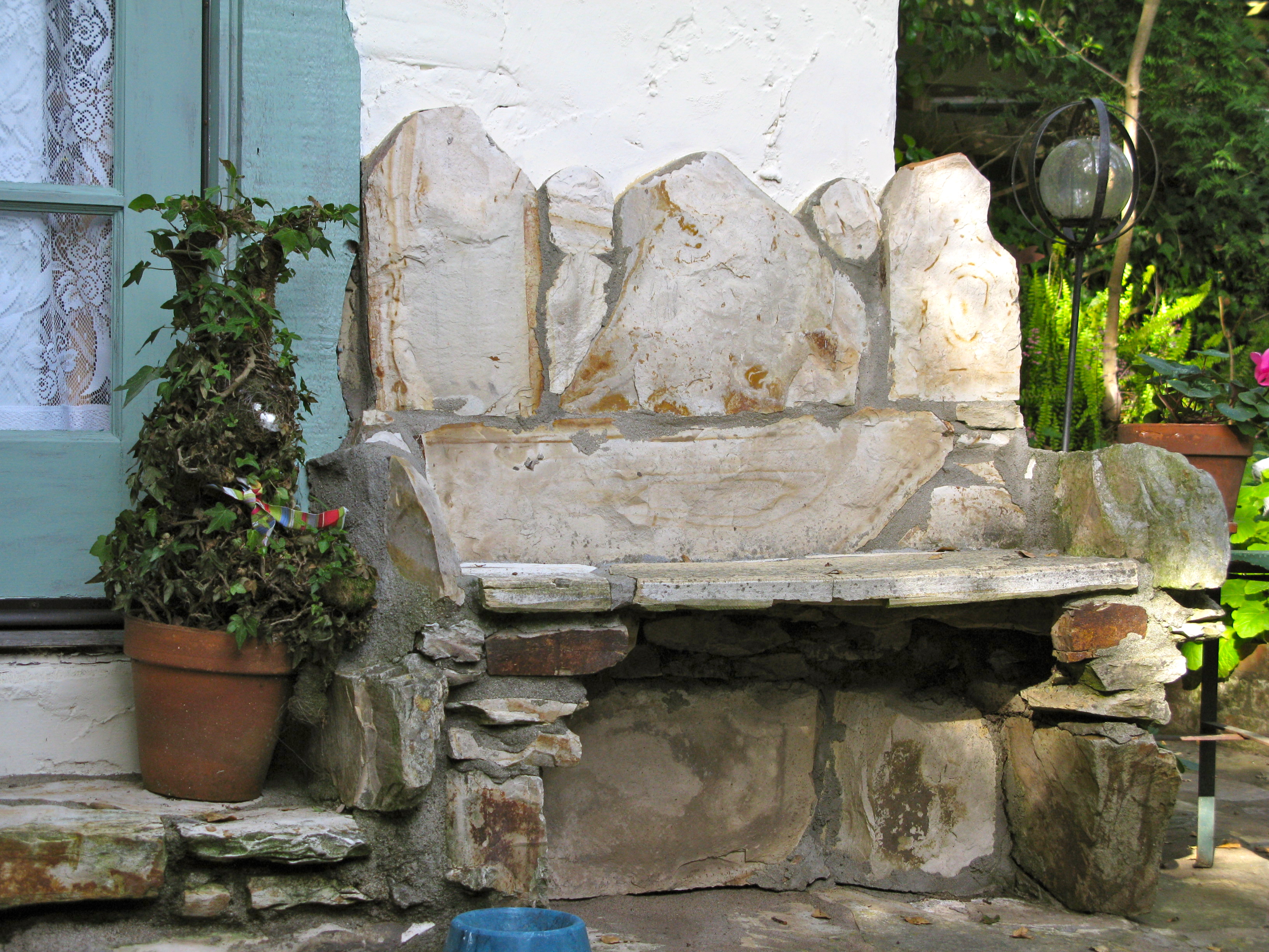 Mary is just finishing lunch and invites me to sit on this rocking bench.