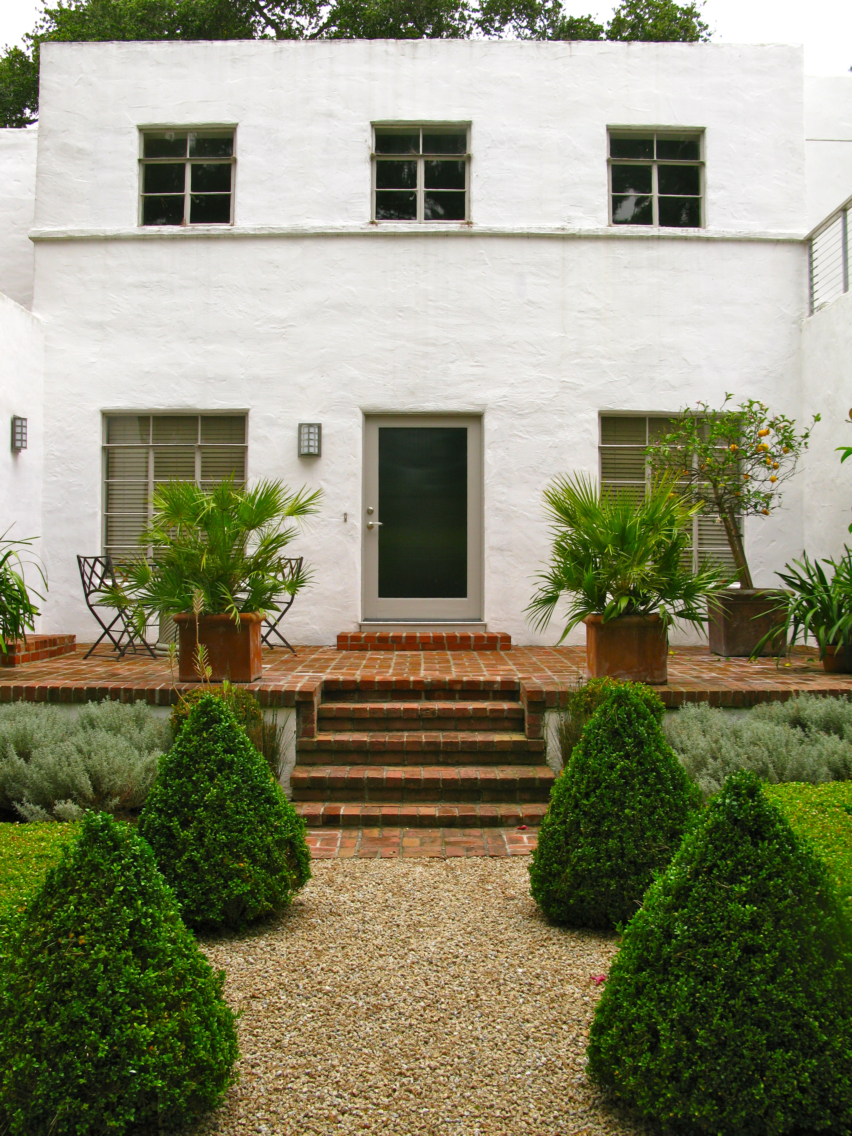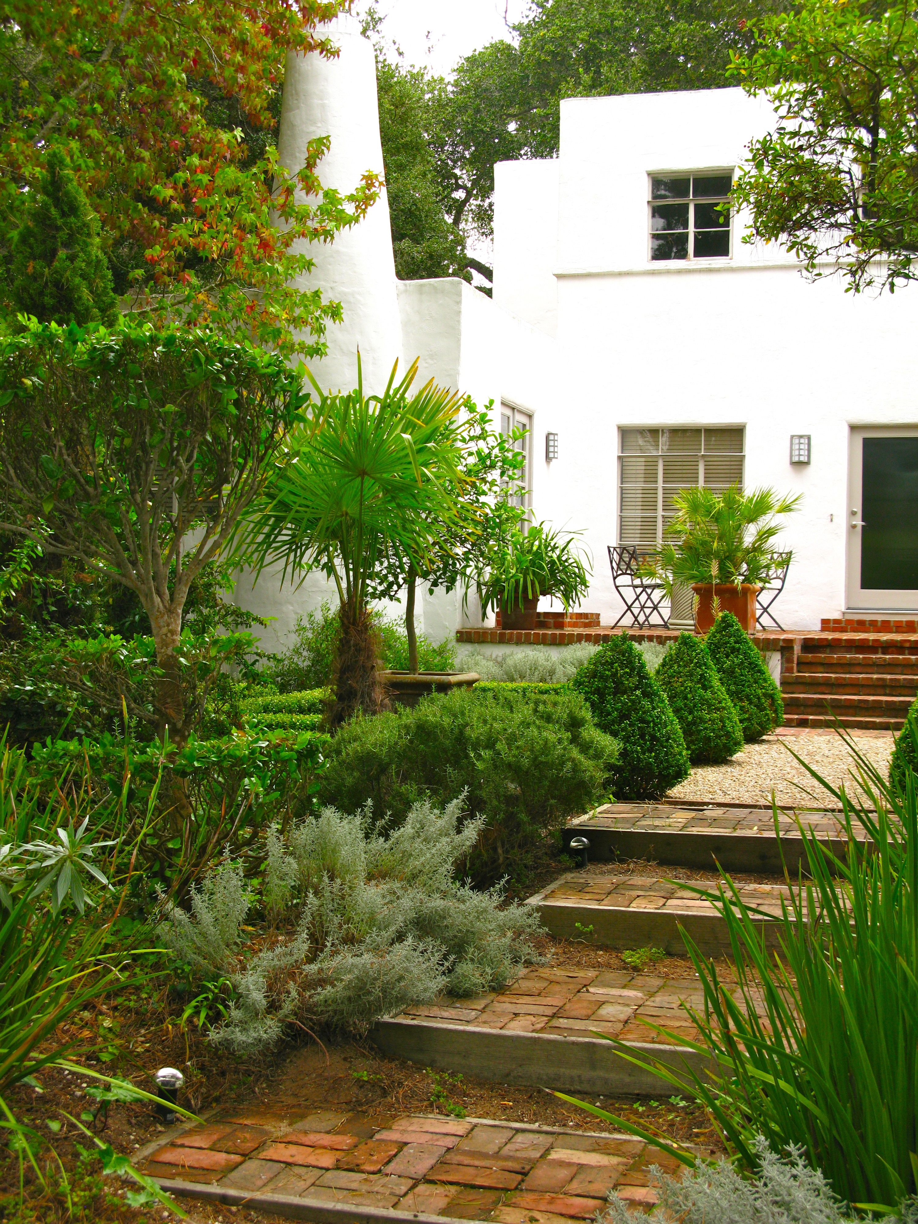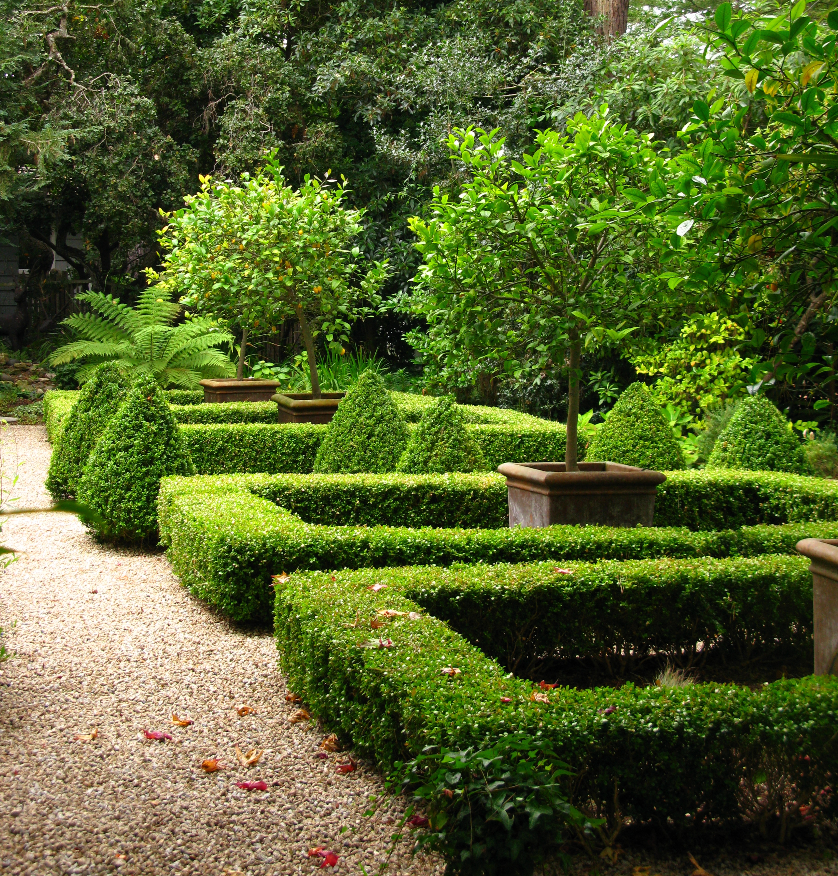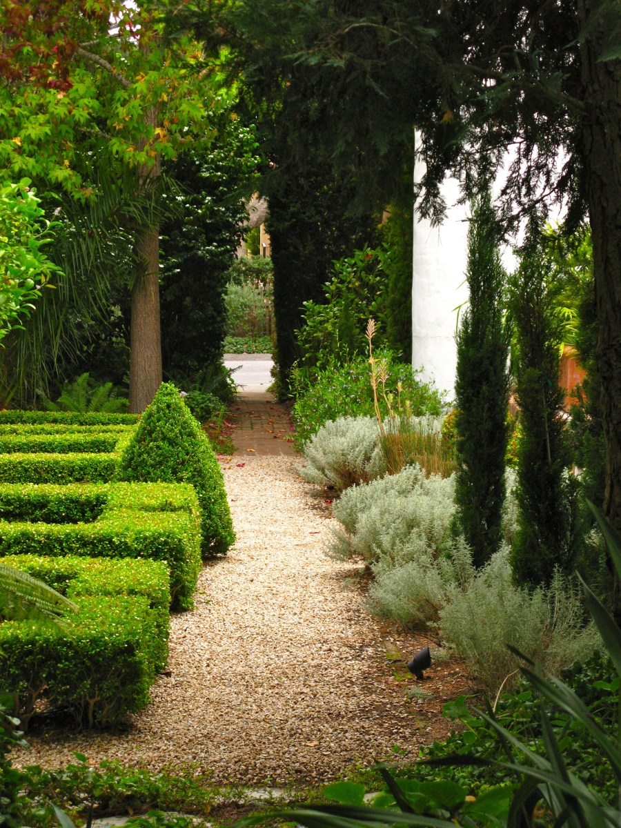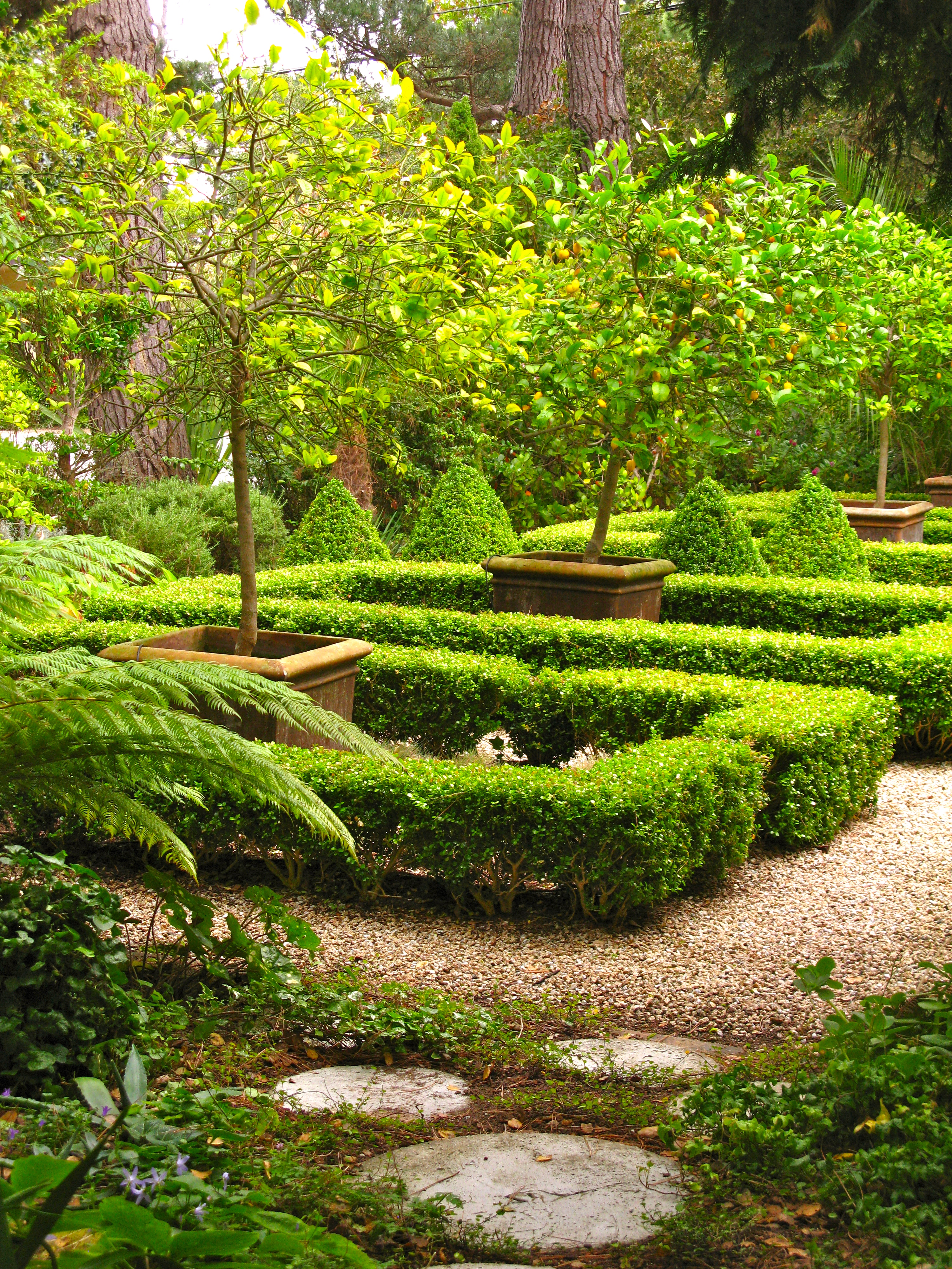 Once inside the formal clipped garden with its perfect symmetry and gravel paths surprises me.