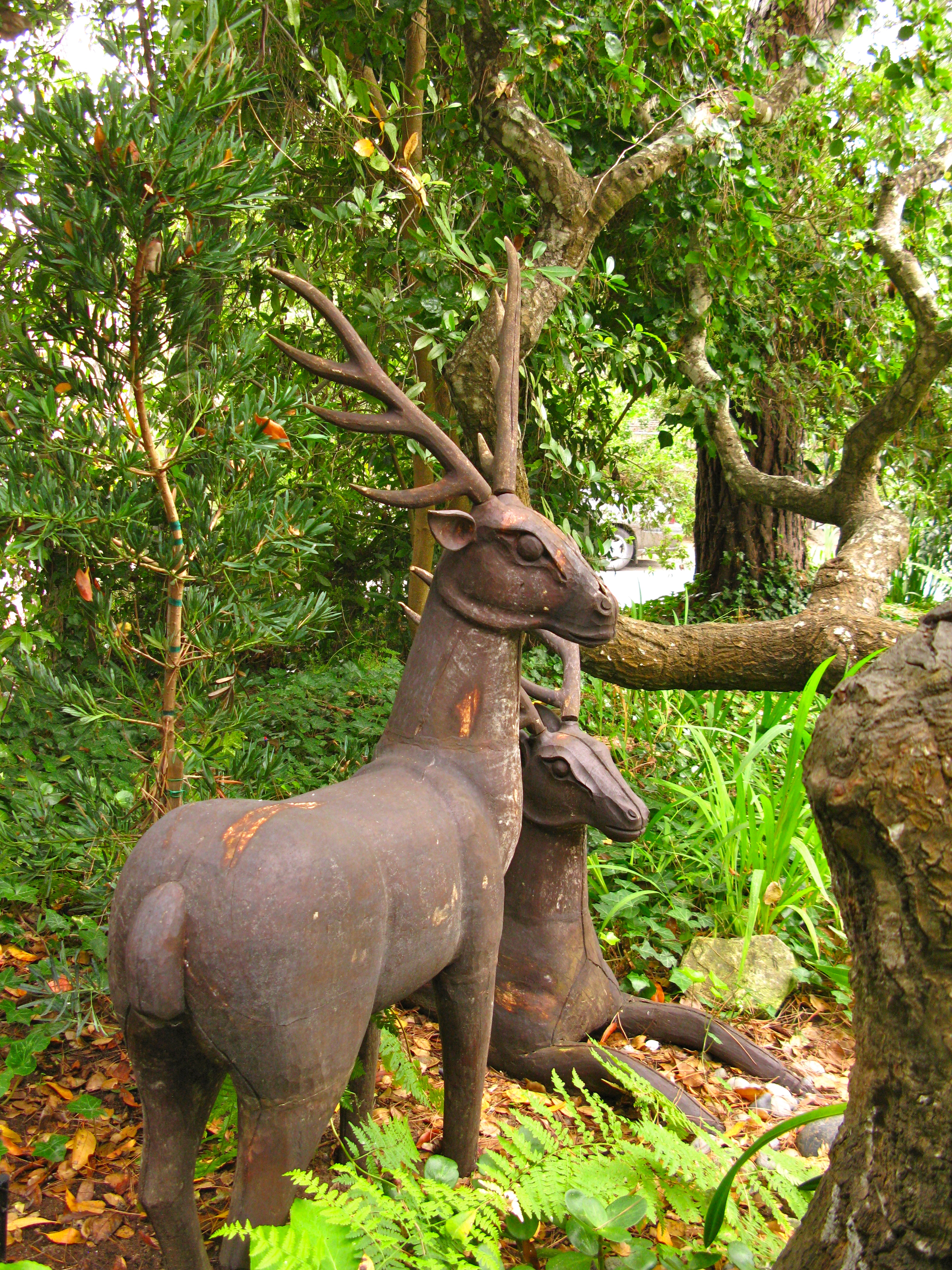 with deer sheltering under its limbs.