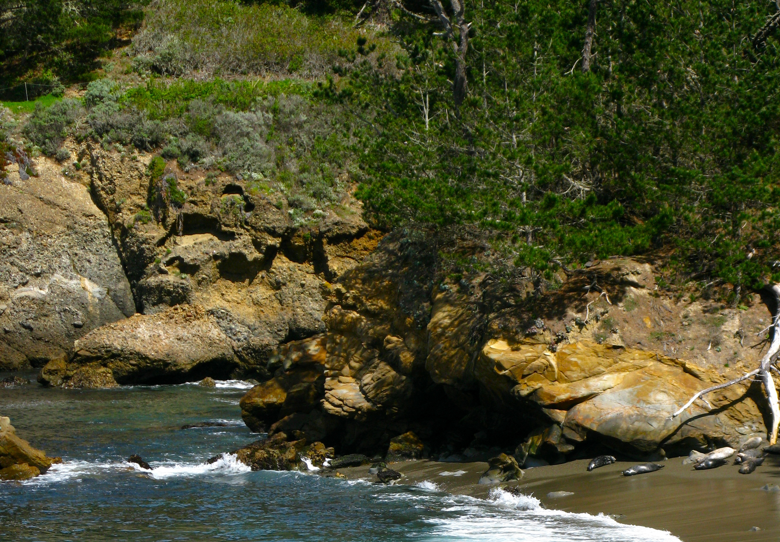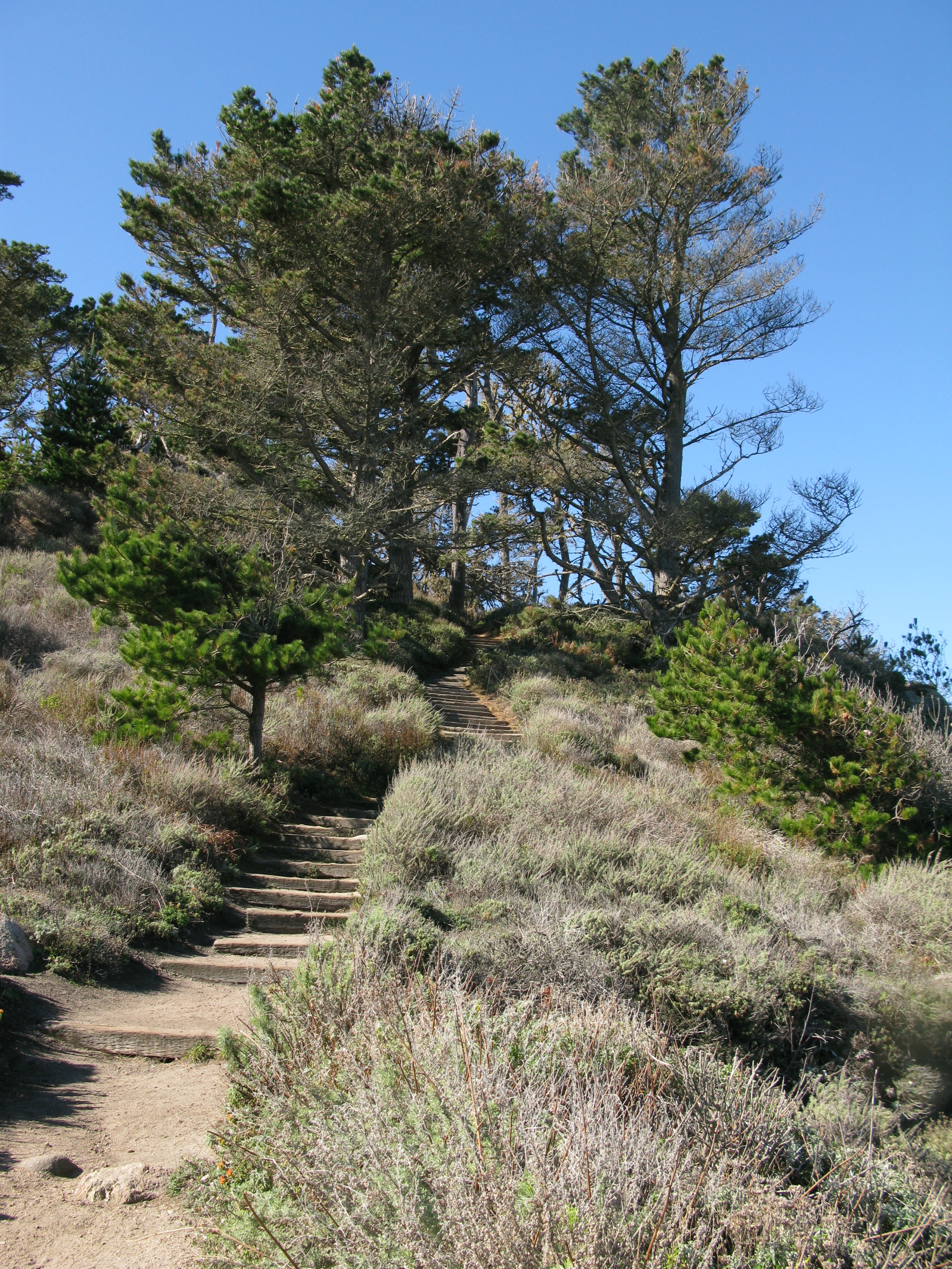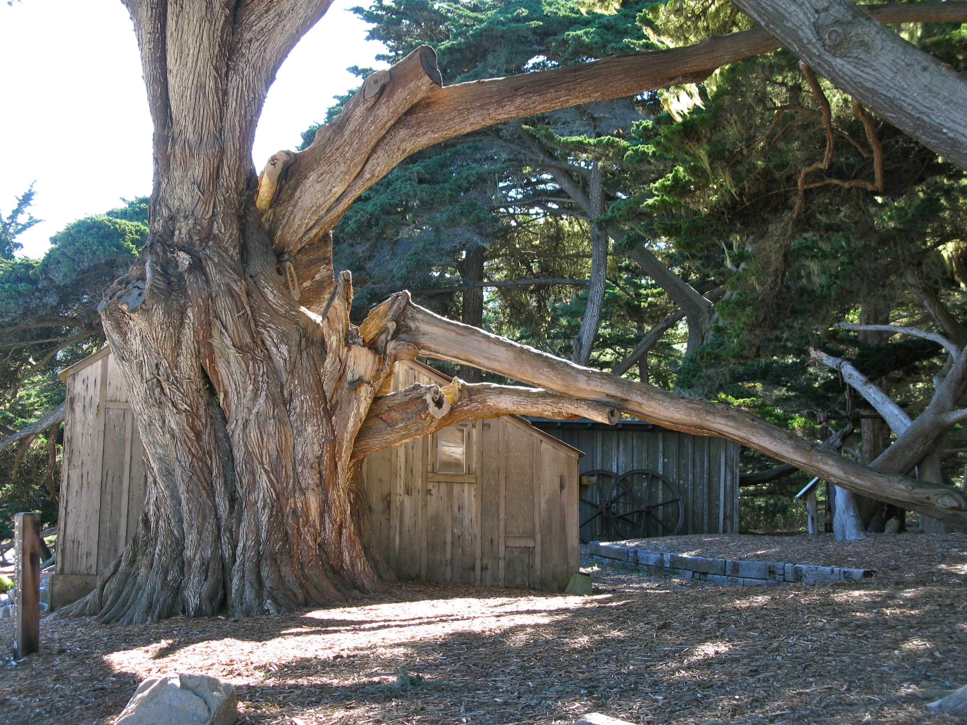 The cabin sits in a grove of Monterey Cypress with their huge trunks and contorted limbs.