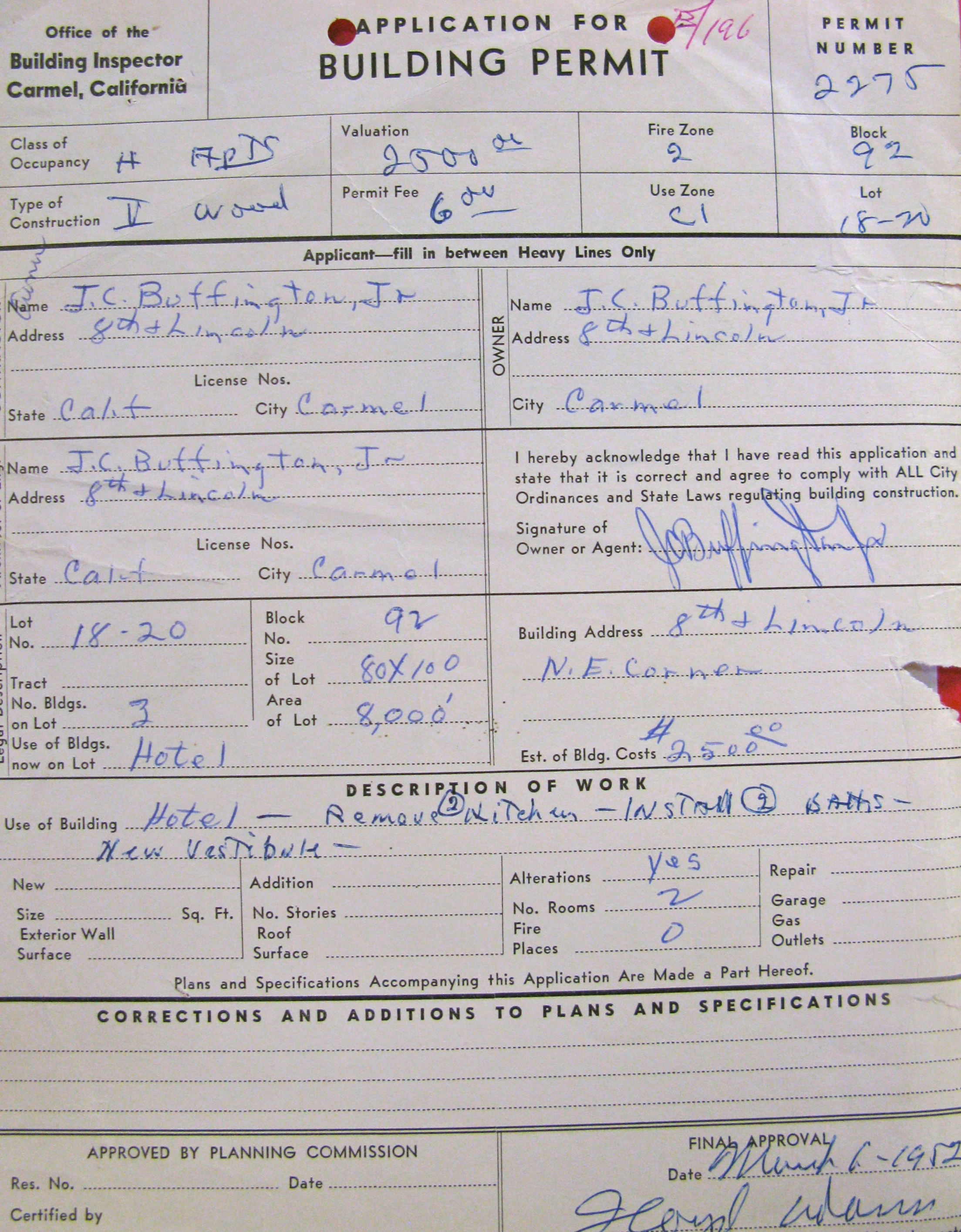 Next Mr. Jim Buffington takes ownership and does some remodeling