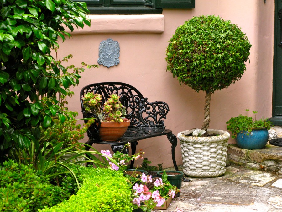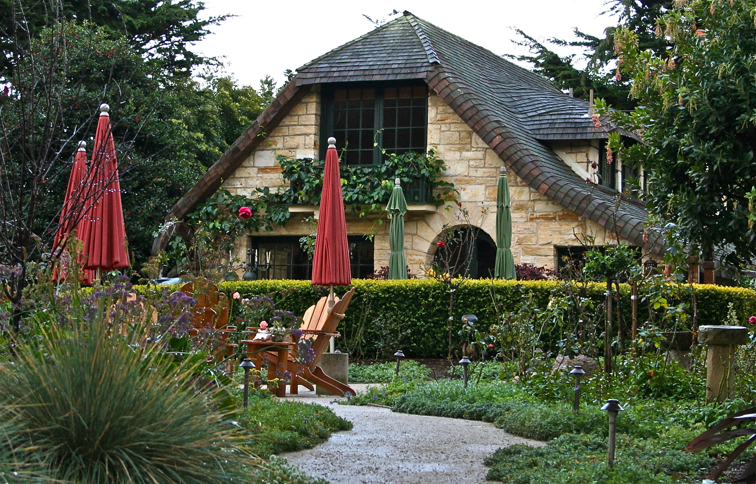 Hob Nob is a Tudor-style stucco, thought to have been designed and built by one of Carmel’s early craftsmen, Ernest Bixler.