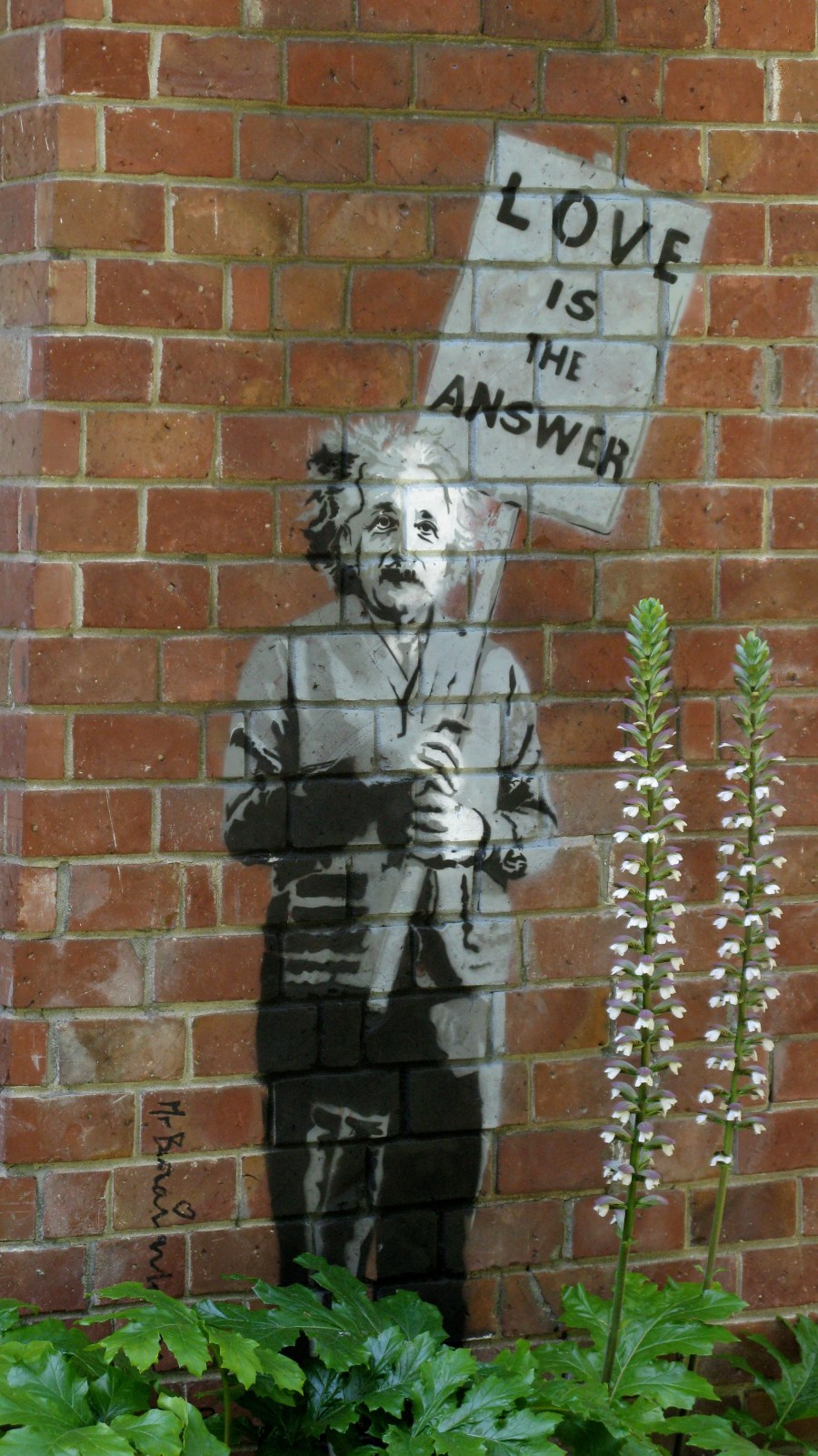 Yep, there is Einstein on Ocean Ave. side of Ocean Cottage. He is standing in a patch of Acanthus proclaiming that “Love is the Answer”. How can I argue with that?