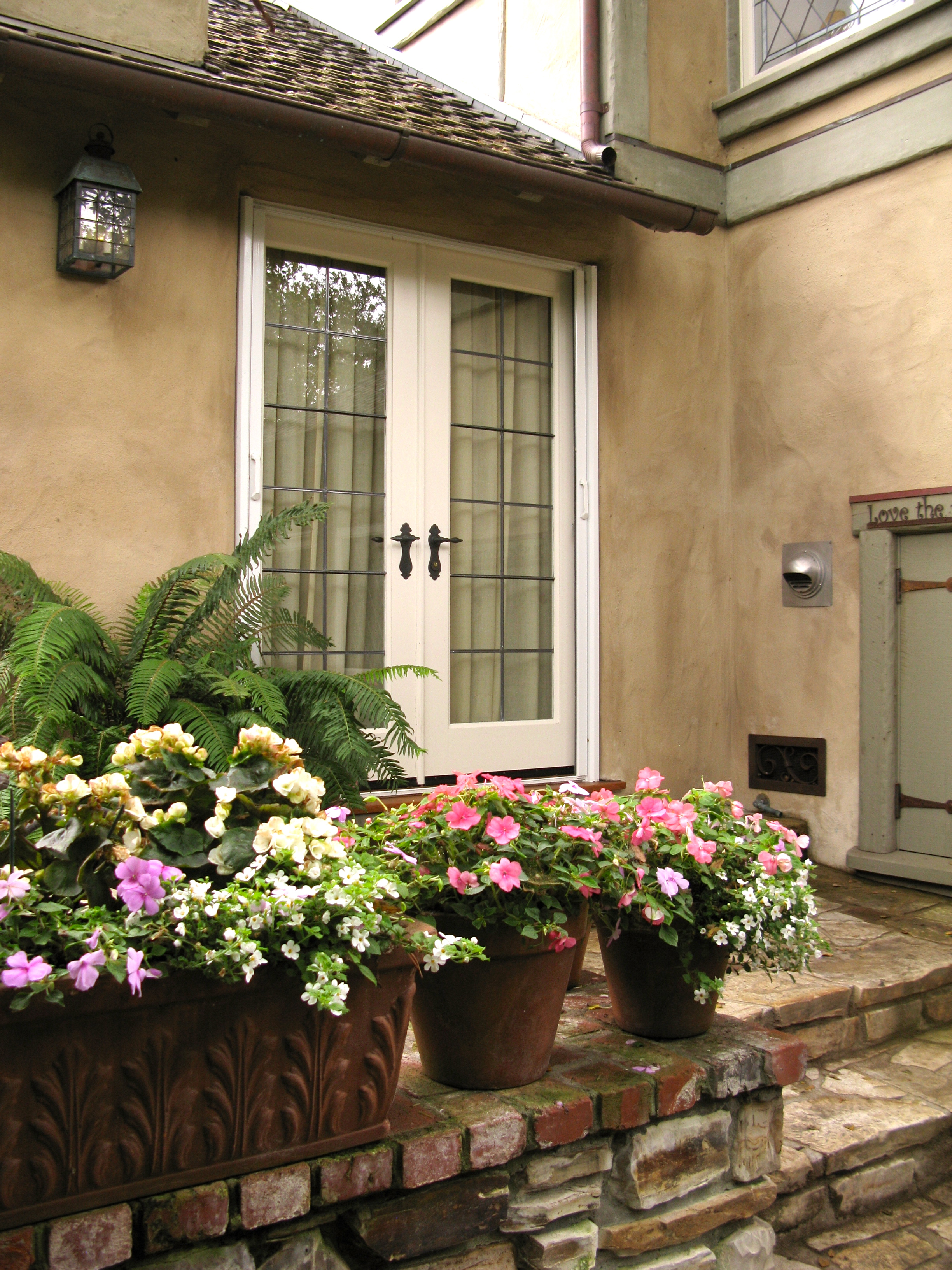 Yes, there is the Slabaugh quality right at the front door. The beautiful stonework  porch has a bench and pots of flowers.