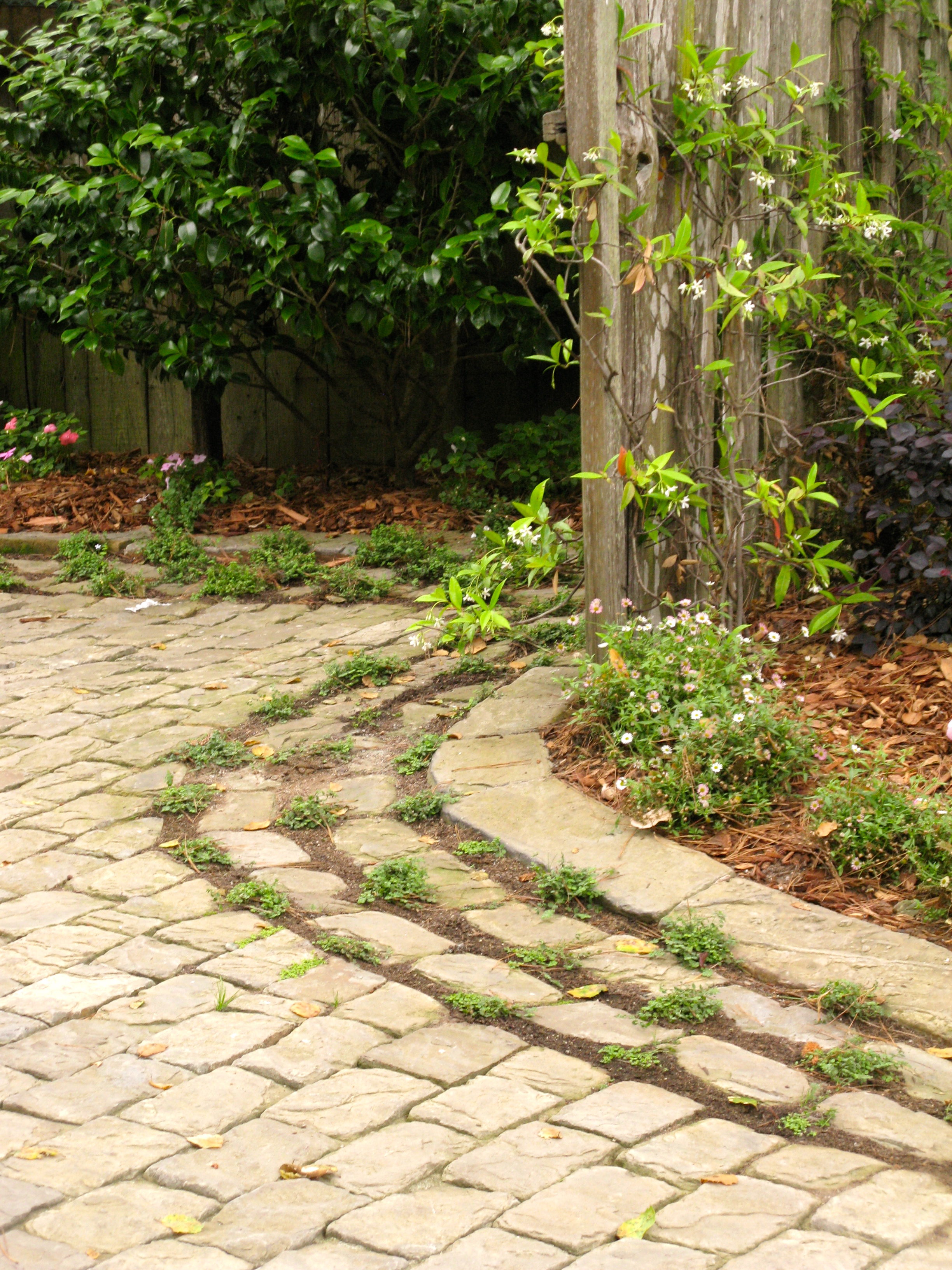 As I leave the property , I notice that even the cobblestone driveway has special touches such as the groundcover planted between the cobbles,