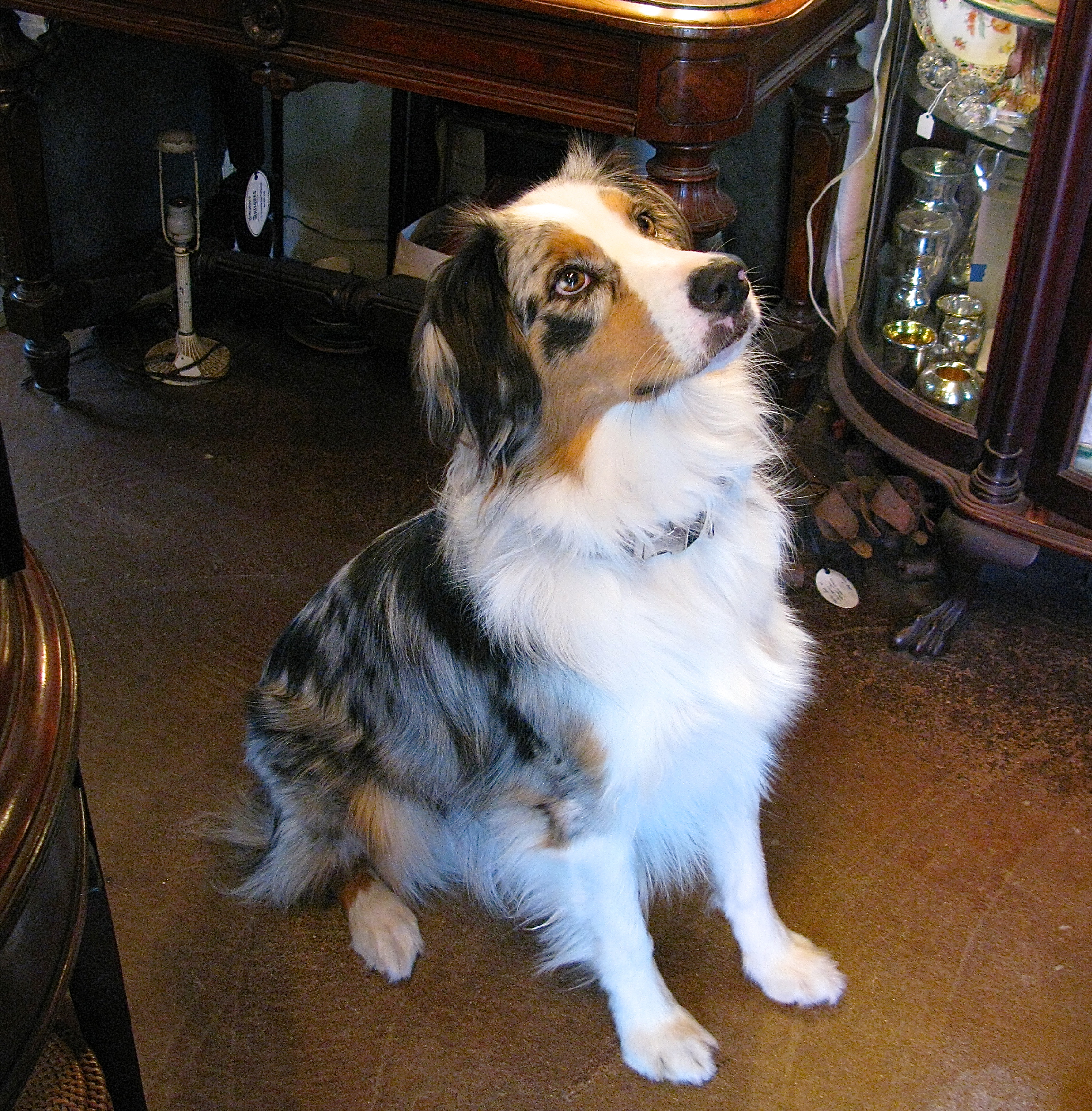 This visit, I meet William, the canine member of the family. He poses for treats and I snap a shot. He is one of Carmel’s many “shop” dogs.