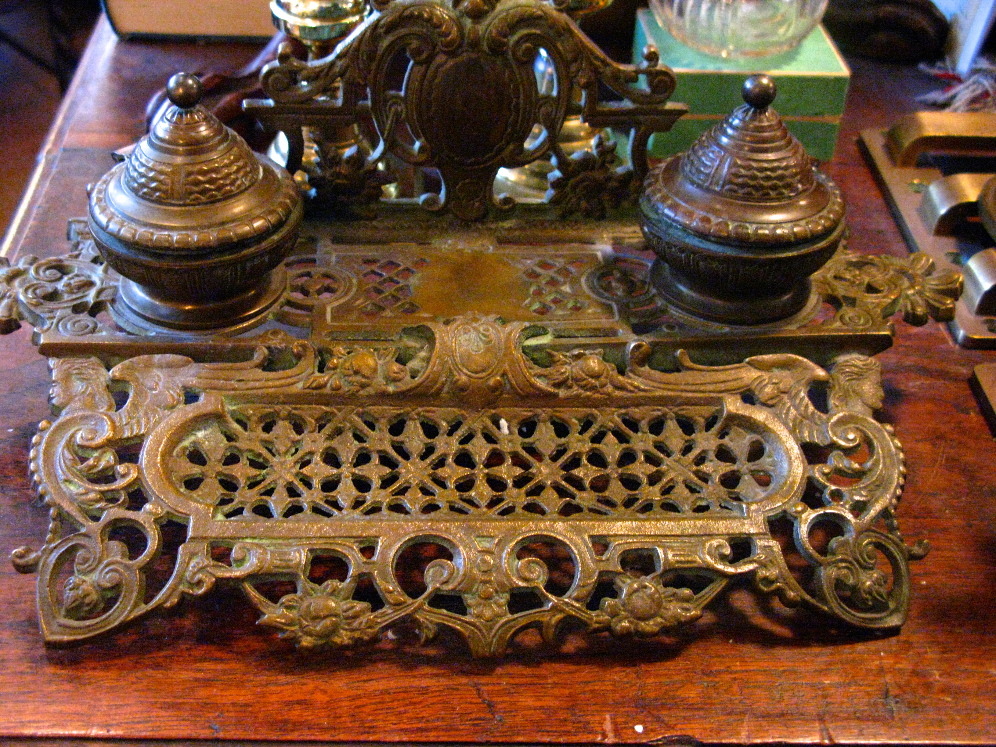 As I admire this English bronze inkwell dating around 1880-1910,