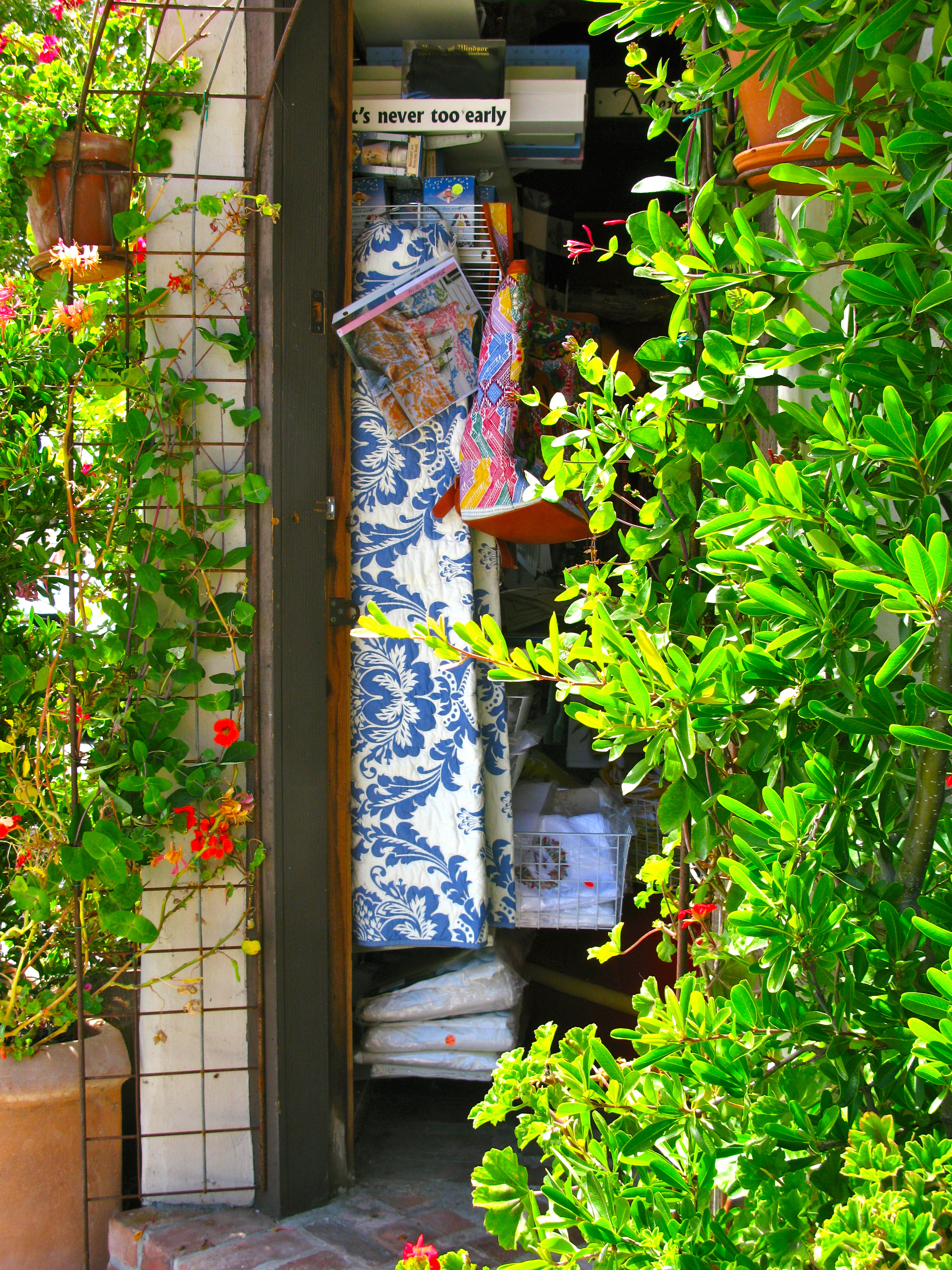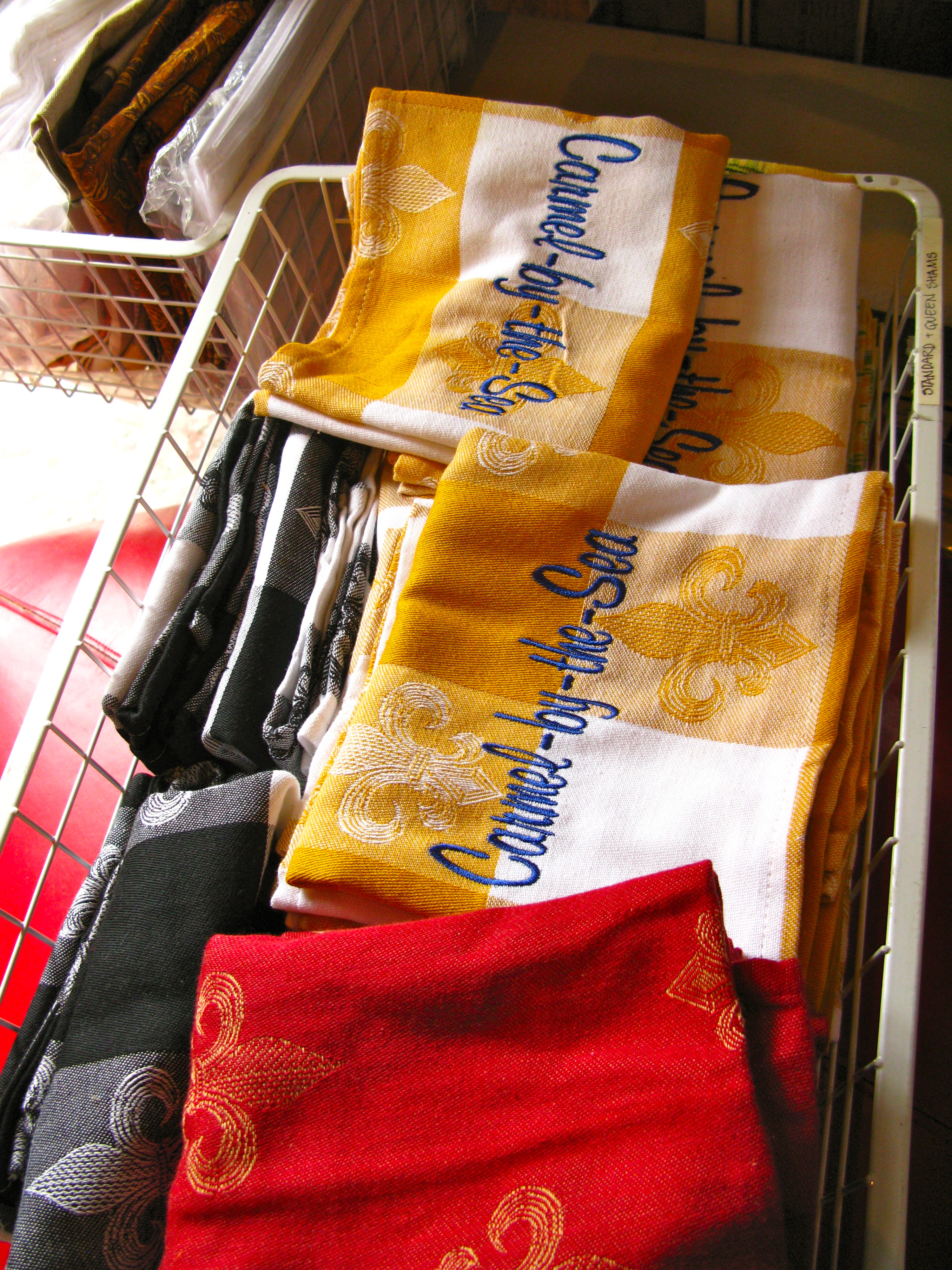 First, a thank you for your ever fascinating blog about Carmel. Because you had piqued my interest so much over the past year, I arranged a four day reunion there in August with a college friend. She came from Palo Alto and I came from Michigan, and we had a wonderful visit full of shopping, dining, and beach visits. While there, I was so much taken by the charm of the business district. Each shop seemed more inviting than the next, and the flowers and plantings added so much to the experience of strolling and shopping. Meredith’s Linens was one of my favorites. I love your photos and descriptions of her shop, and I am so glad to know that she has a website. Now I can return to this favorite store online.