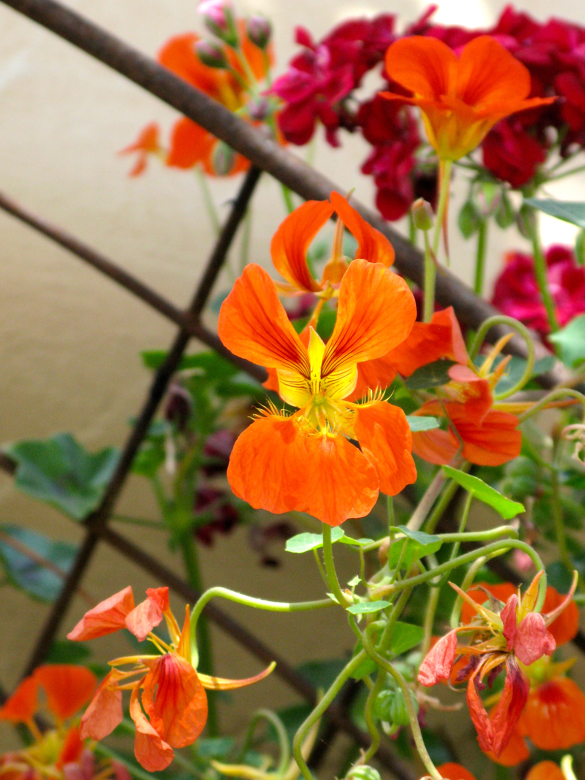 More trellis-work goes up to support the Bougainville and climbing geranium.