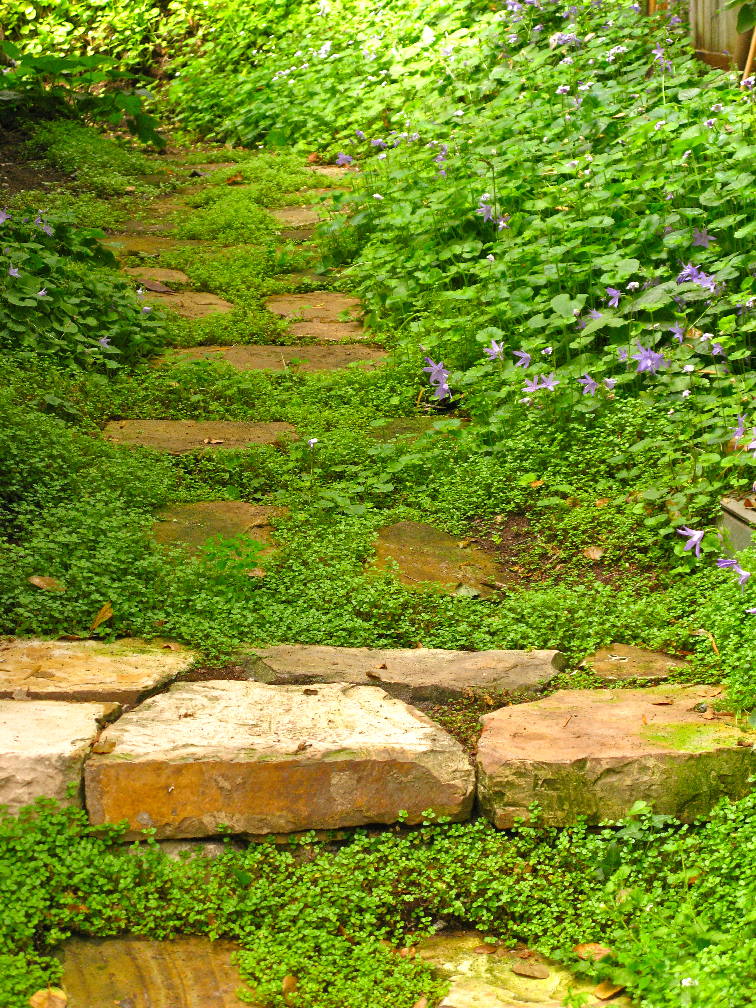 Develop meandering pathwork. The path adds stucture, character and allows you to walk around and care for the plants.