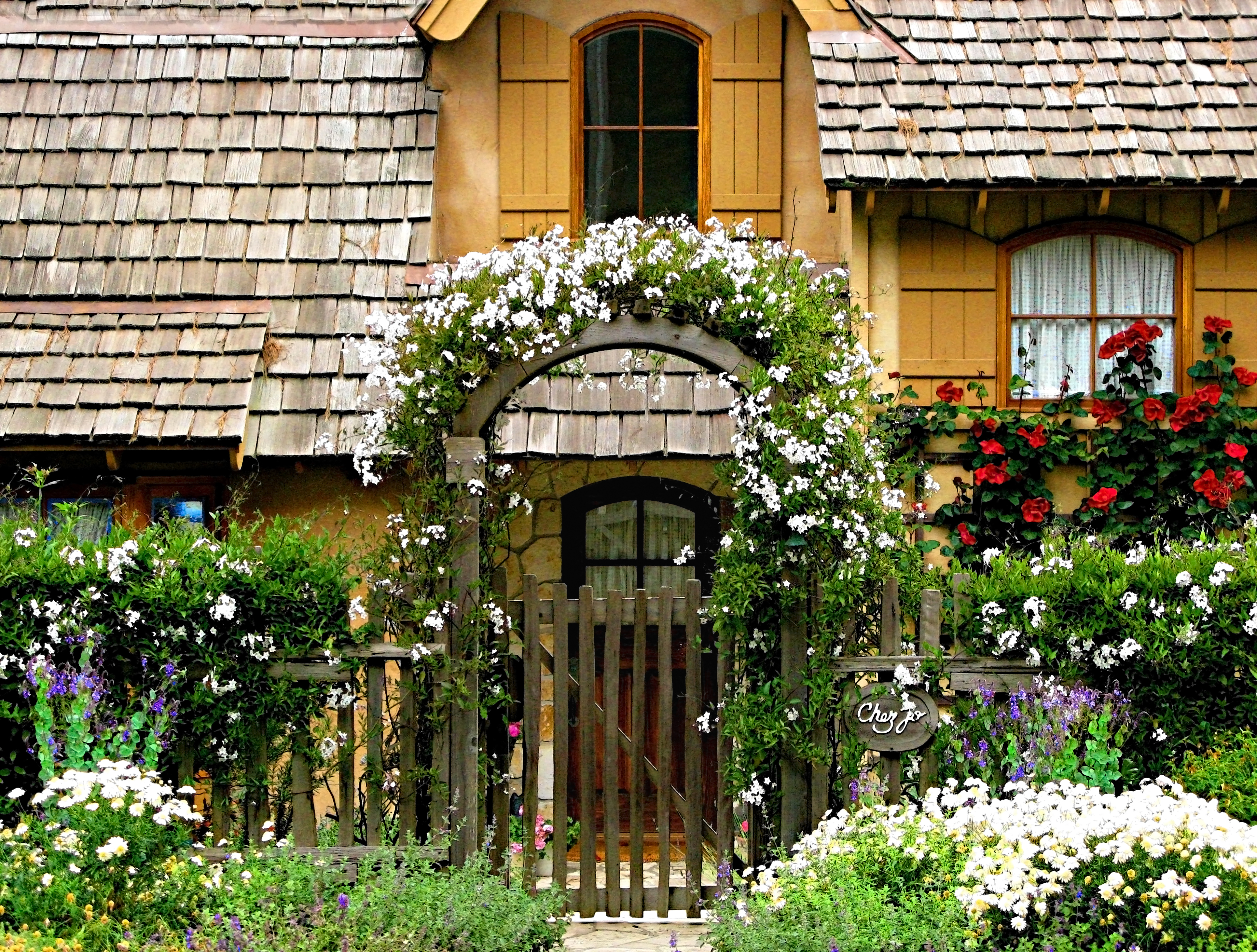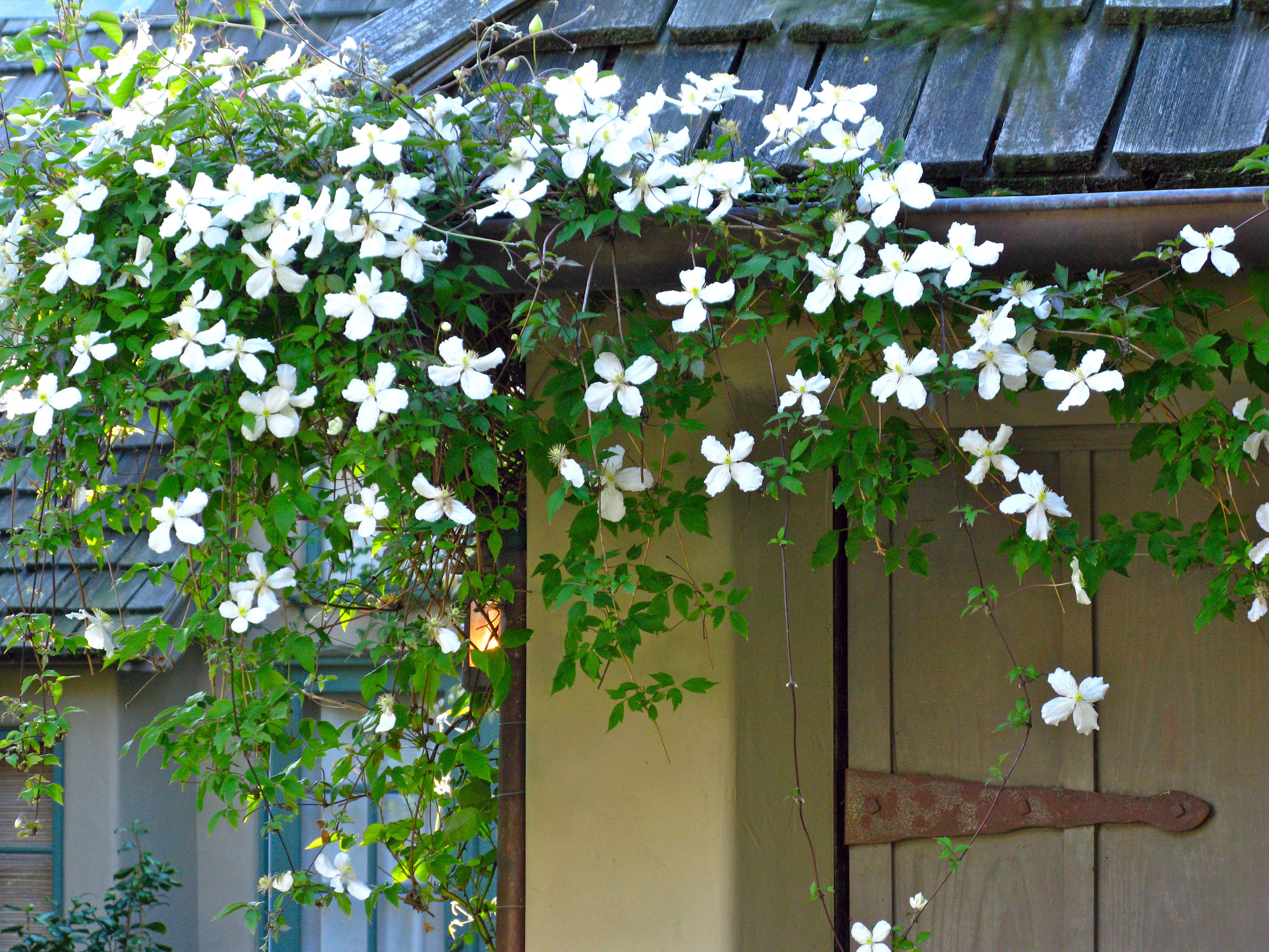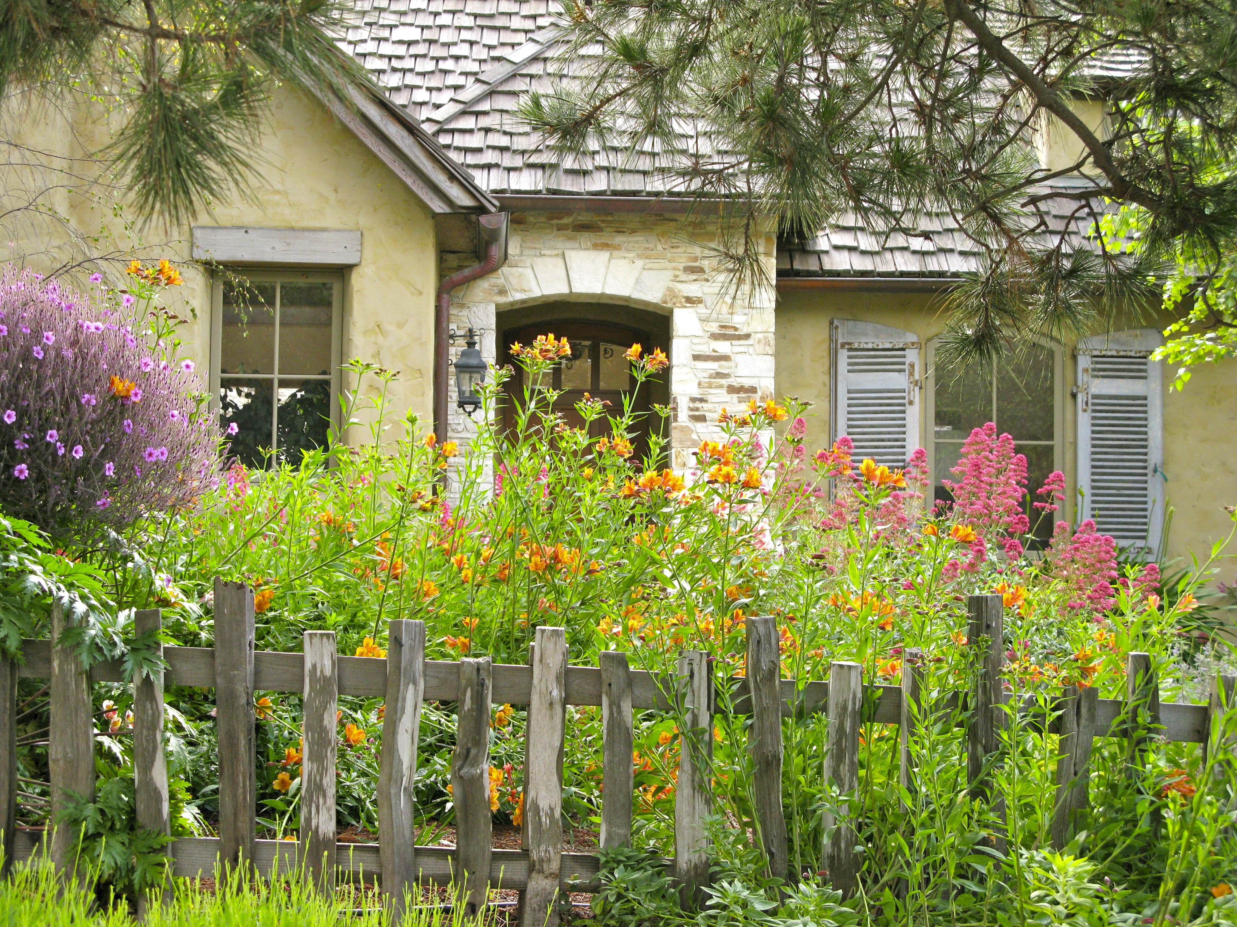 Cottage gardens take advantage of vertical space. So remember to cover trellis, arbors, and fences with such climbers as