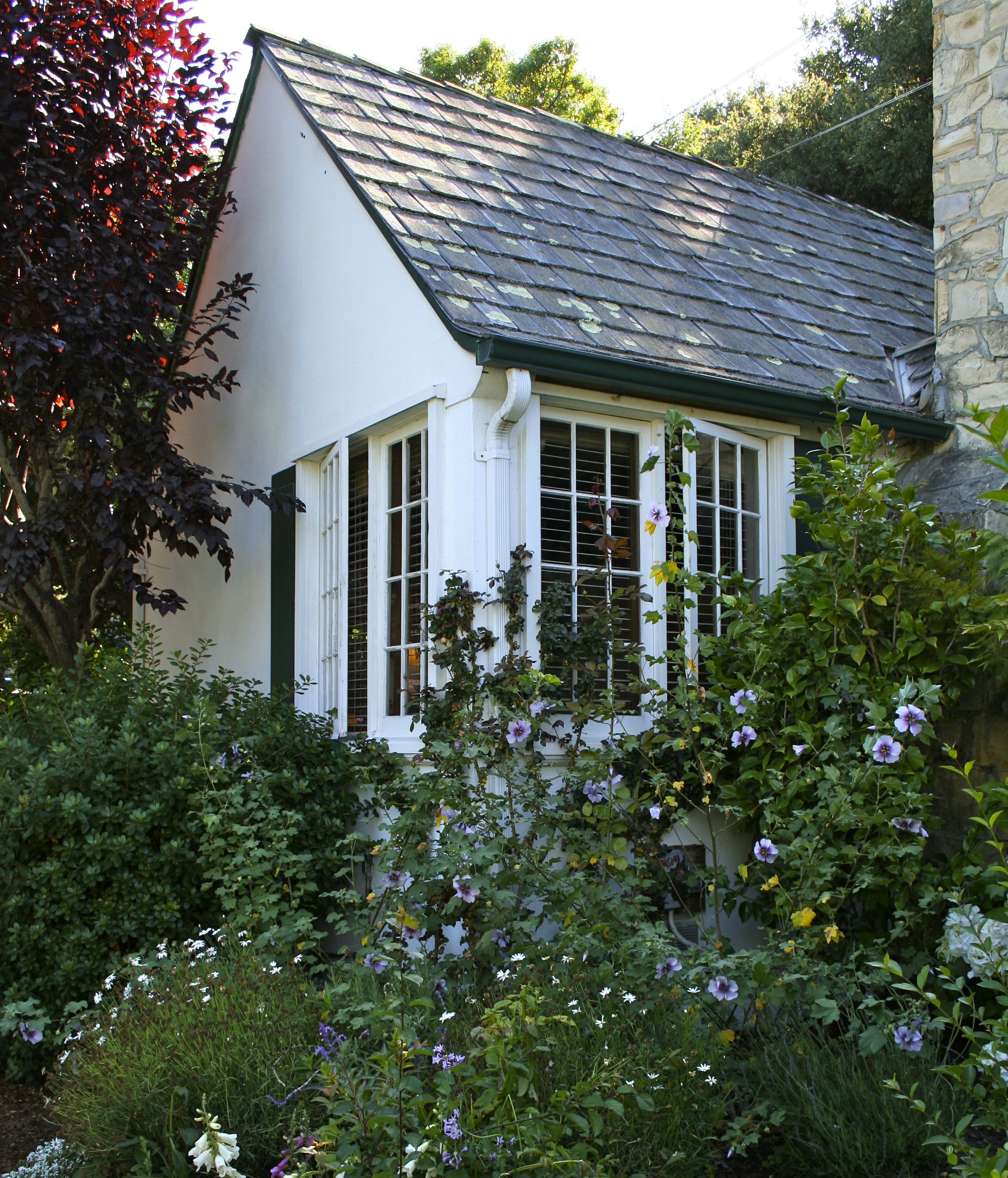 Shrubs really call attention to the front door of this cottage. I can not even imagine it without them.